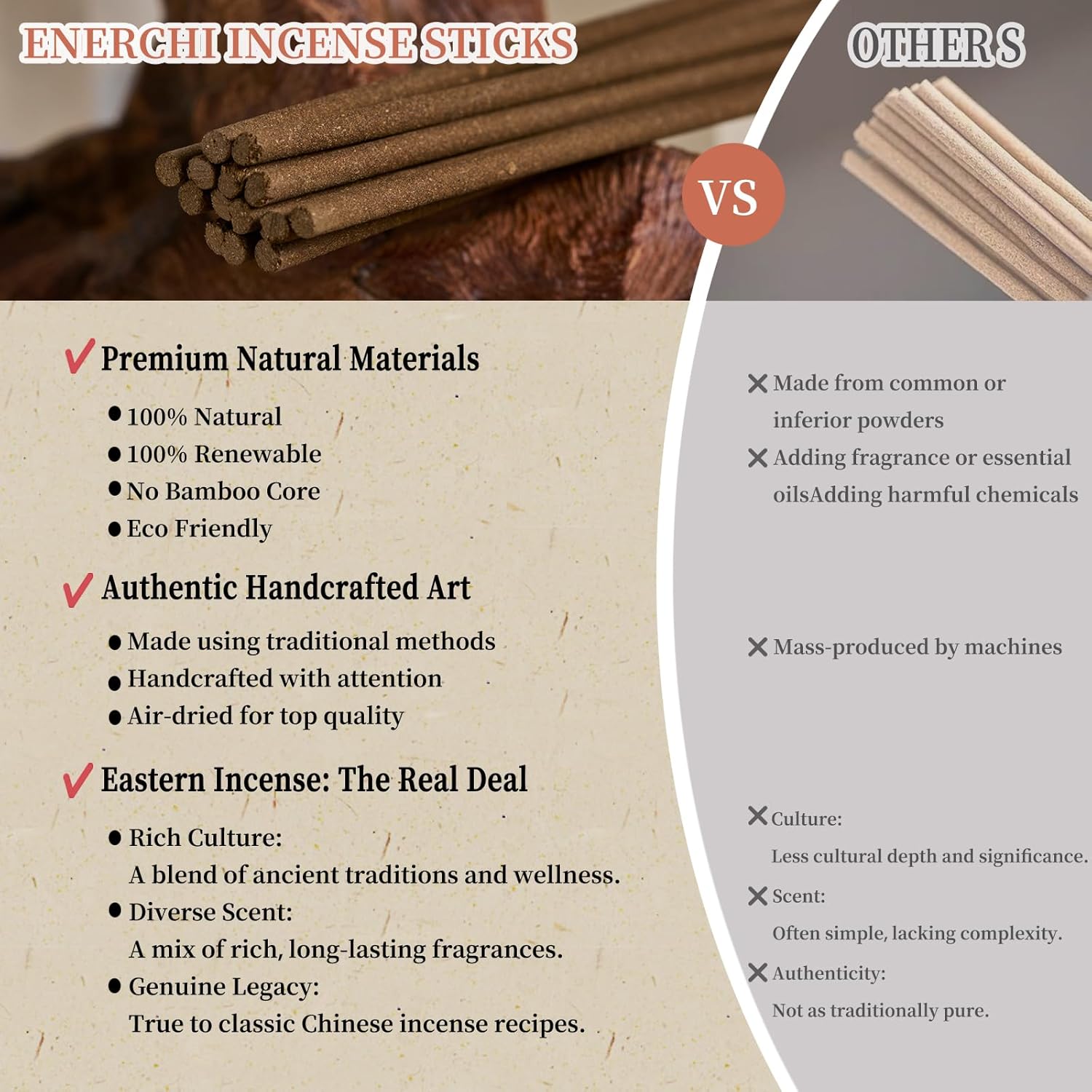 - 𝙃𝙖𝙣𝙙𝙢𝙖𝙙𝙚 𝙬𝙞𝙩𝙝 𝙕𝙚𝙧𝙤 𝘾𝙝𝙚𝙢𝙞𝙘𝙖𝙡 𝘼𝙙𝙙𝙞𝙩𝙞𝙫𝙚𝙨: Our natural incense sticks are handcrafted using natural materials, carefully selected and free from chemicals. Each stick is made with traditional techniques for a pure, authentic aroma.
