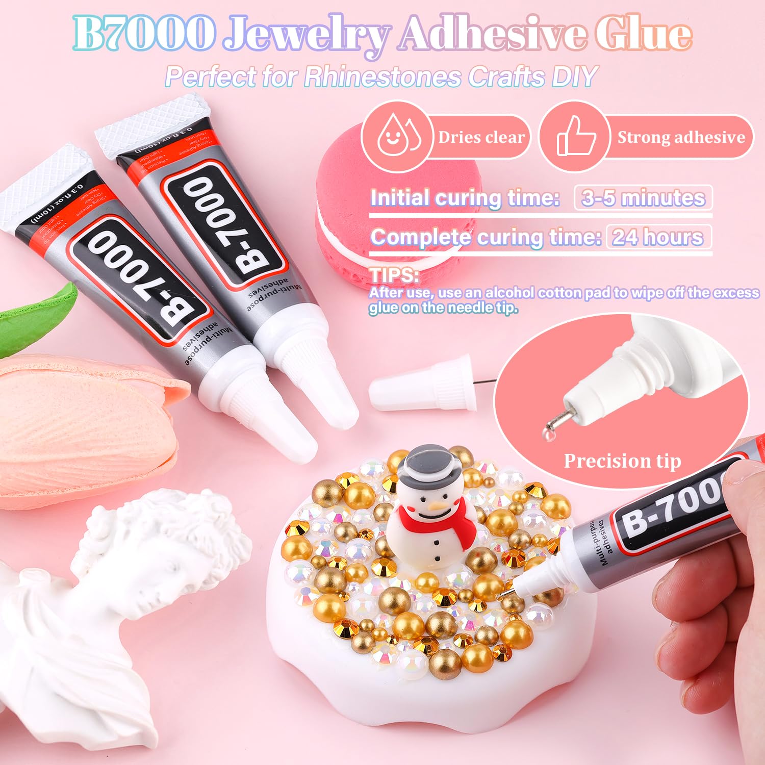 - WHAT YOU WILL RECEIVE:1 box of 9000pcs flat pearls and rhinestones to meet your different needs. Besides, this set of half pearls and gems comes with a tweezer, a picker pencil and 3pcs 10ml B7000 jewelry adhesive glue, which helps you spare no effort to pick up the beads and enjoy the fun of DIY.