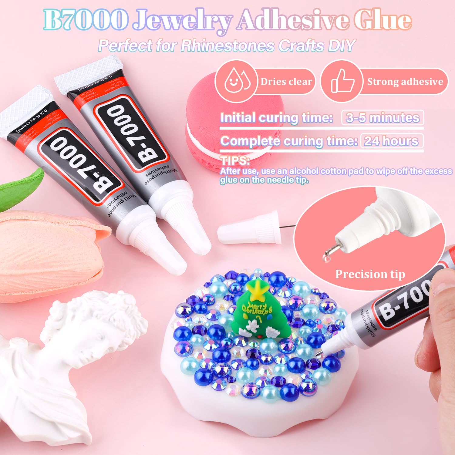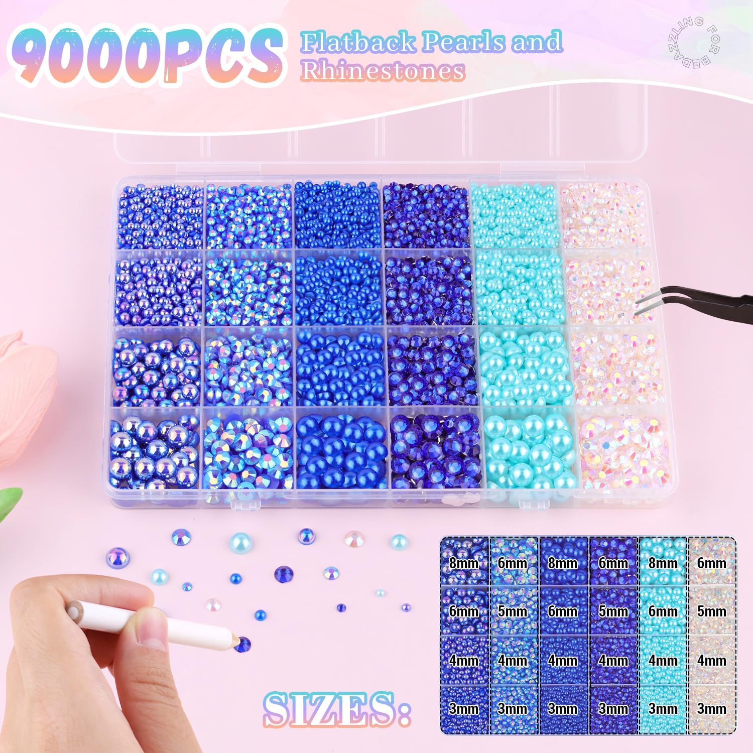- WHAT YOU WILL RECEIVE:1 box of 9000pcs flat pearls and rhinestones to meet your different needs. Besides, this set of half pearls and gems comes with a tweezer, a picker pencil and 3pcs 10ml B7000 jewelry adhesive glue, which helps you spare no effort to pick up the beads and enjoy the fun of DIY.