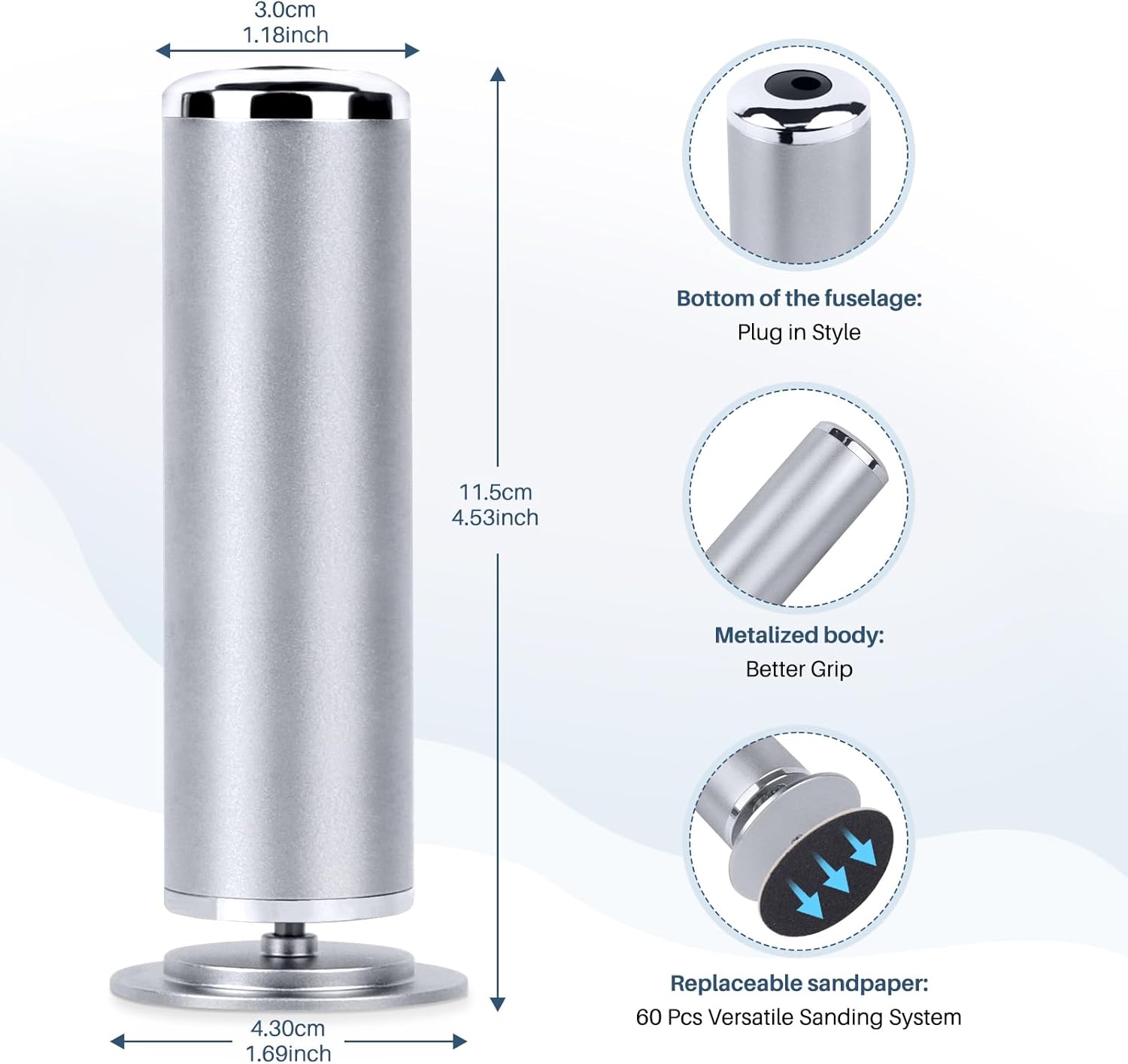 Electric Foot File Remover Callus: Profesional Pedicure Tool for Foot Sander - Summer Adjustable Speed Feet File Grinder for Skin and Calluses - 60 Pcs Replacement Sandpaper Disk for Home Spa Salon