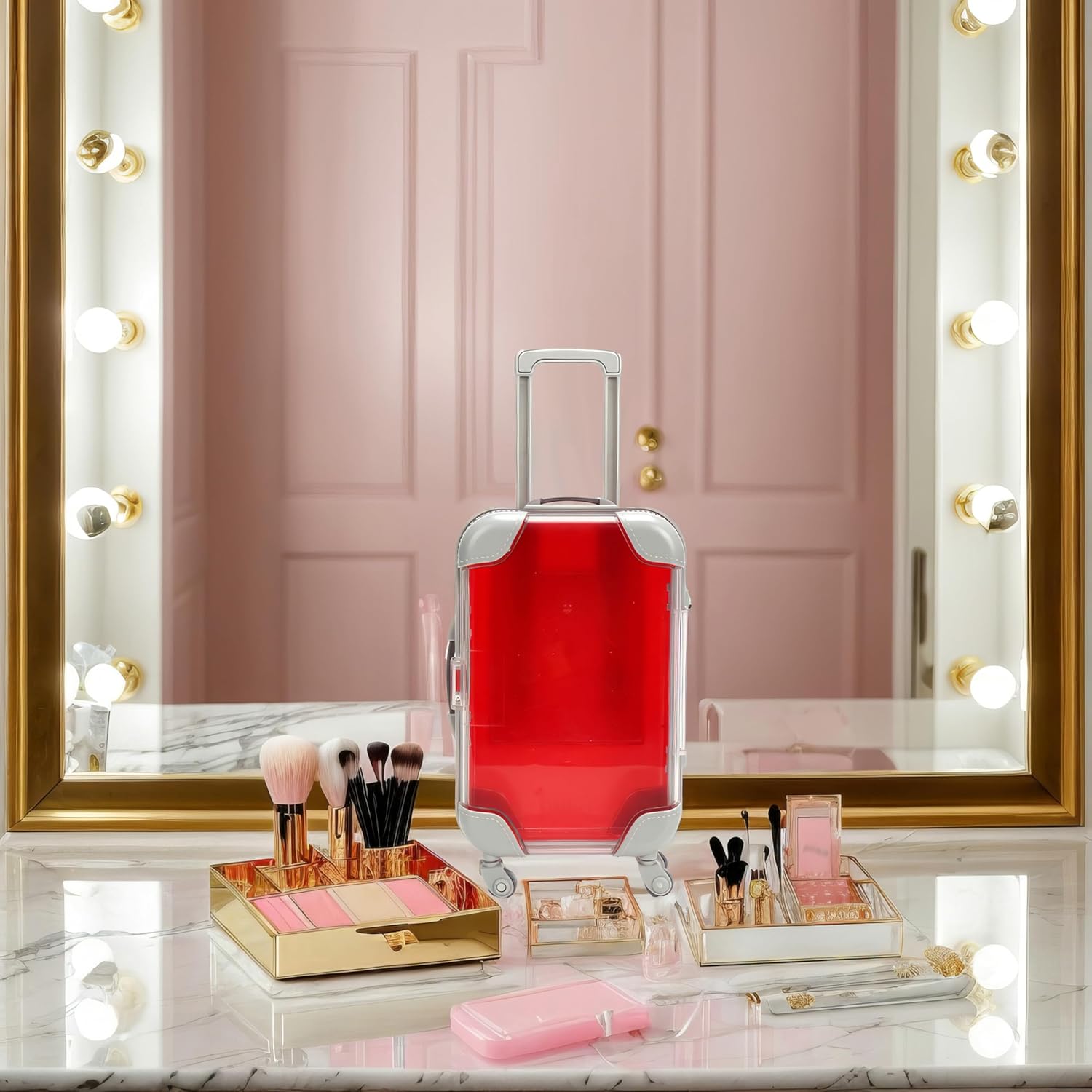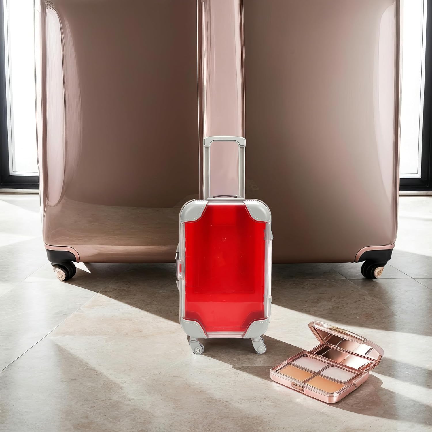 False Eyelash Storage Box, Portable Travel Organizer Mini Luggage False Eyelash Tray Makeup Tool (RED)