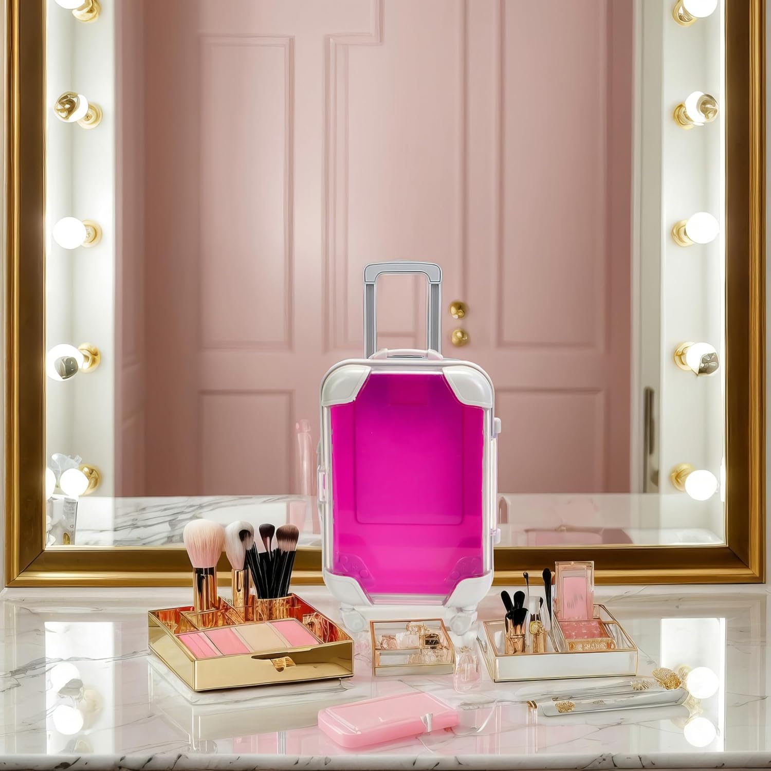 False Eyelash Storage Box, Portable Travel Organizer Mini Luggage False Eyelash Tray Makeup Tool (ROSE RED)