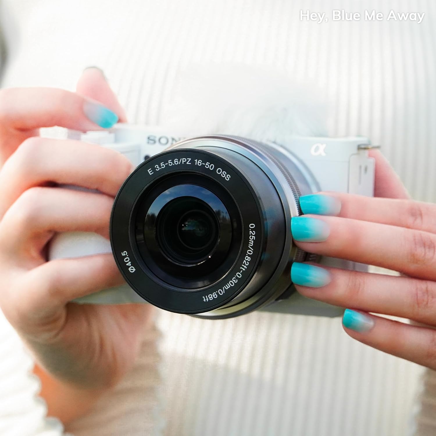 Semi Cured Gel Nail Strips | No LED Lamp Needed | Ombre, Blue, Spring | Easy Apply & Remove, Salon Quality | Includes 28 Strips, 1 Prep Pads, Nail File & Wooden stick - Hey, Blue Me Away