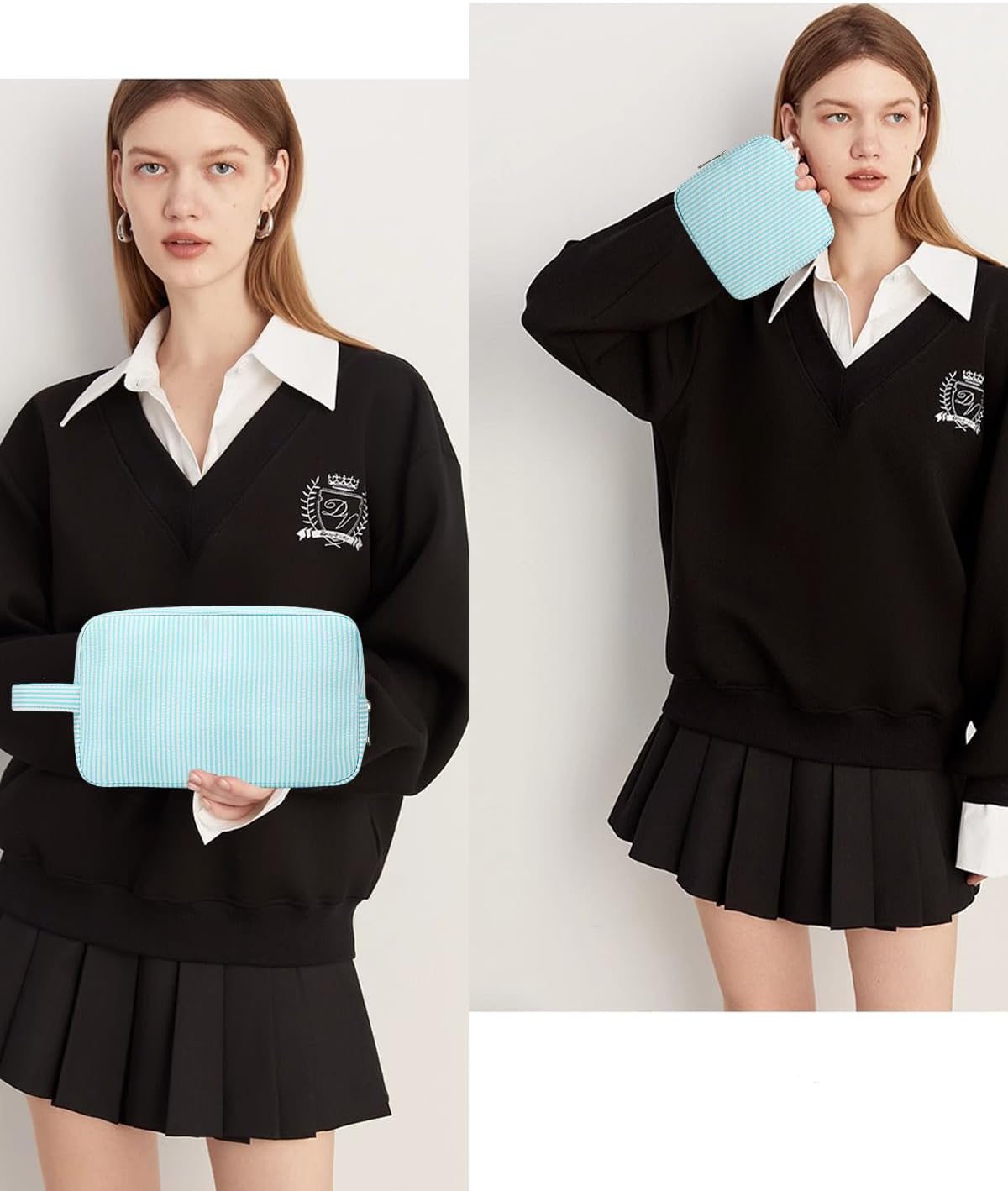 - Decent Size: You will get 2 makeup bags of different sizes to meet your different needs. And our cosmetic bag only need to open the zipper, all items at a glance, quickly select the required cosmetics. L: 9.45" X H 5.51” X W 2.76”, S: L 5.12" X H 5.12” X W 2.36”