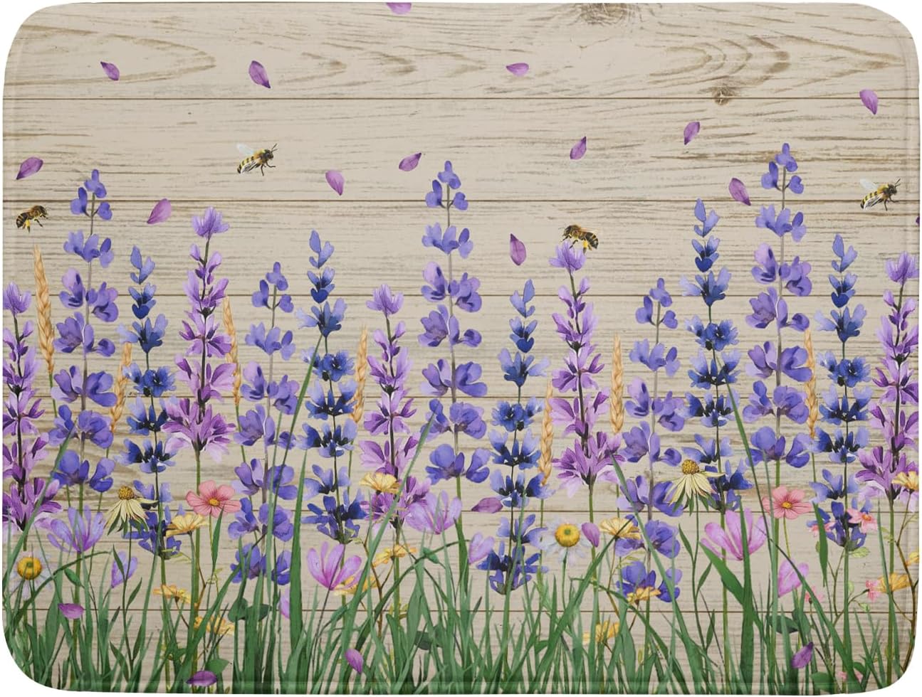 Lavender Floral Dish Drying Mat 18x24 inch Spring Summer Flower Decorative Fast Dry Dishes Drainer Mats Reversible Washable Dish Rack Pad