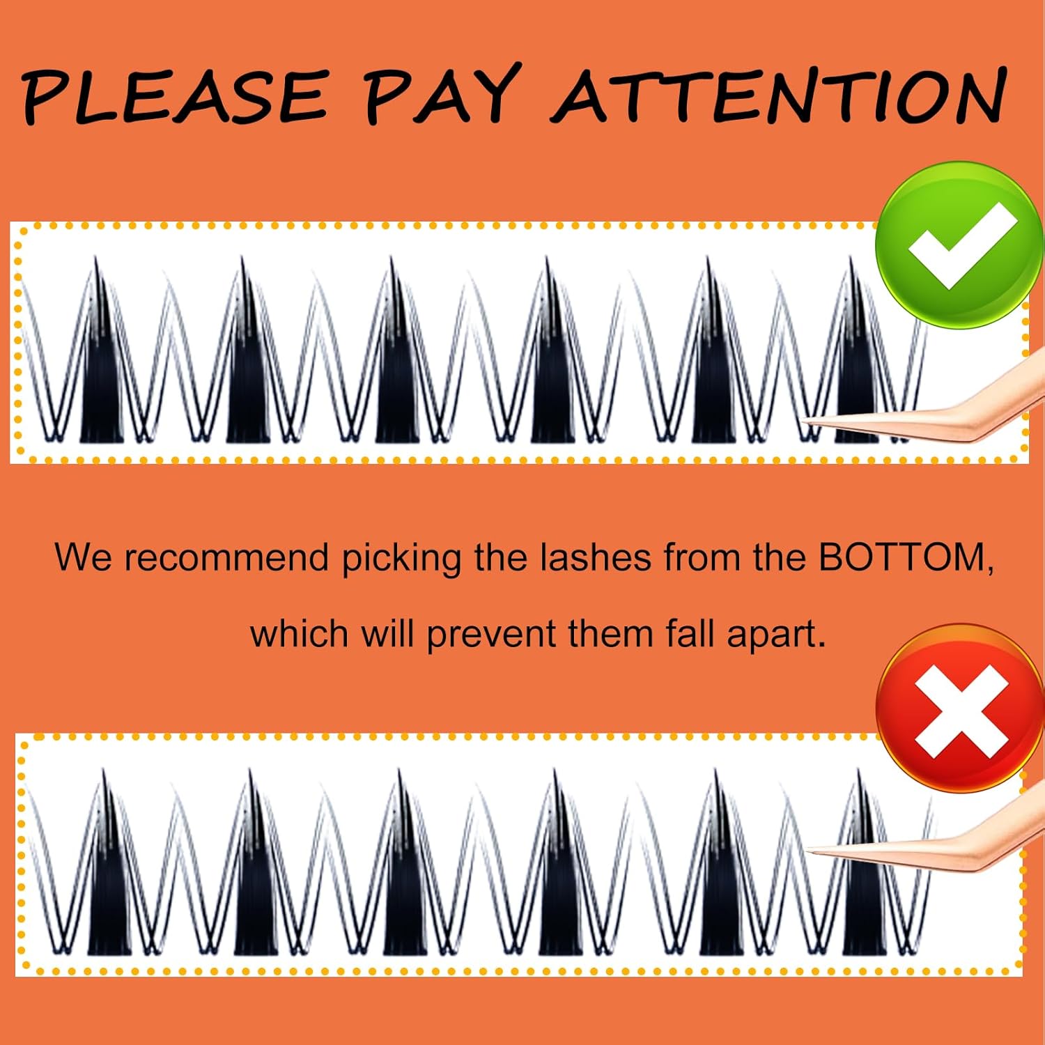 - 3 Steps Application: First Scrape off any excess lash BOND and brush a thin layer of bond UNDER the natural lashes. Then Gently take the lashes off with the tweezer and apply them underneath your natural lashes. After applying the full set, dab a light coat of lash SEAL under the lashes at the base to lock them in place.