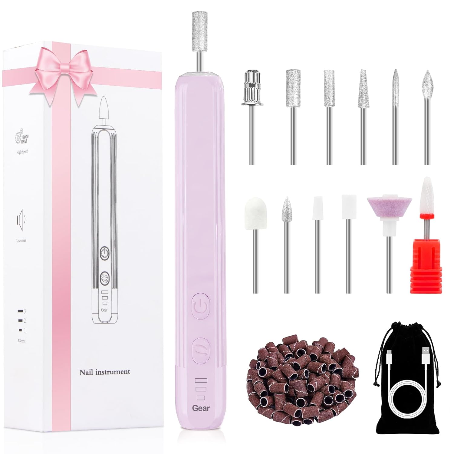 - What you will get: The Electric Nail Drill Kit comes with 12 interchangeable drill bits,100 sanding bands , Type-C charging cable to give your nails a salon-worthy look, this nail kits are the best gift for your nail lovers friends, It's so convenient and you can do a hand or foot care salon privately at home, and everything you need is included.