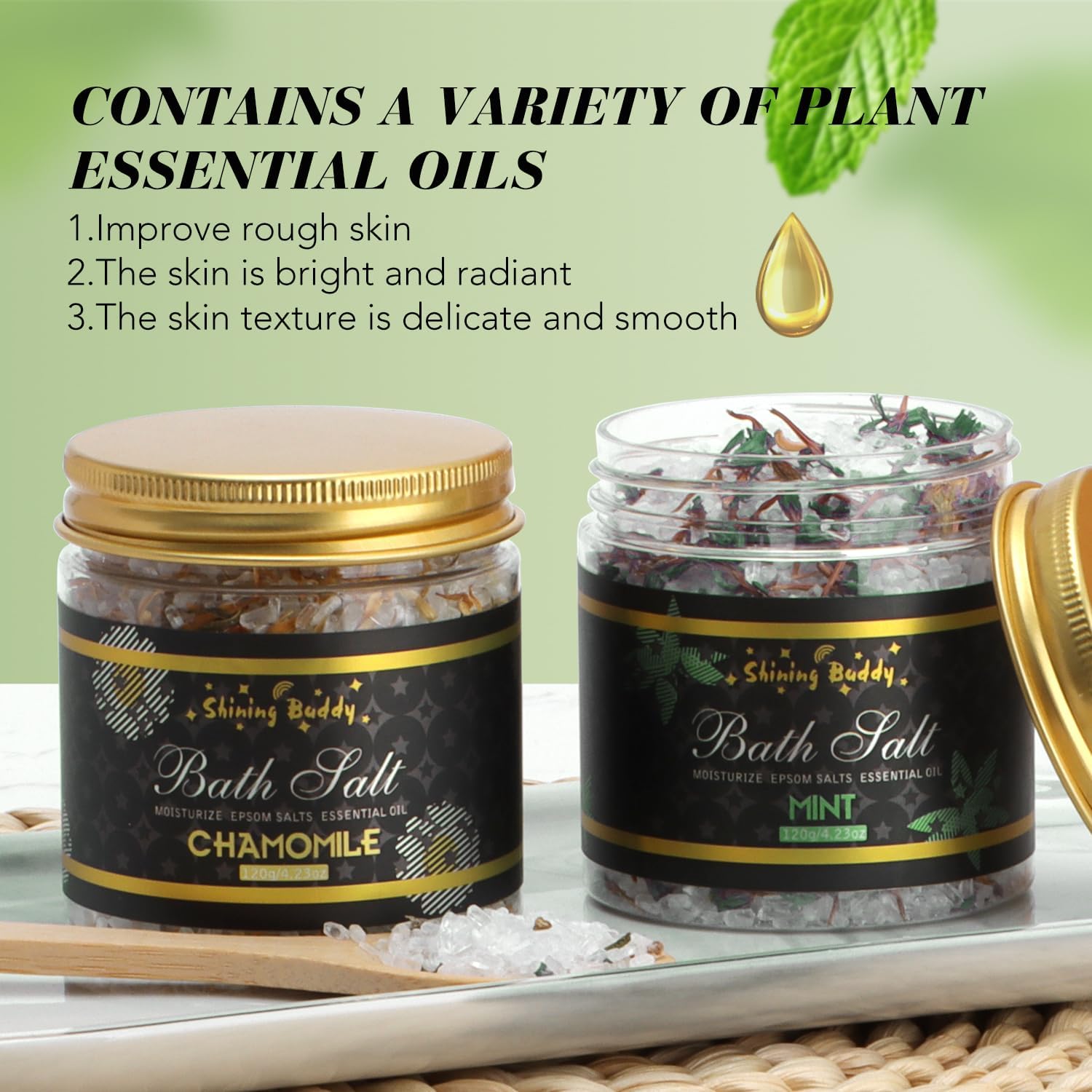 - THE ULTIMATE SELF-CARE & AROMATHERAPY GIFT SET: Delight loved ones with our luxurious bath salts gift set, blending floral elegance (roses, jasmine) and therapeutic essences of lavender, eucalyptus, chamomile, and mint for a soothing fragrance. Infused with pure Epsom salt and natural oils, these lavender epsom salts for bath rituals offer spa-grade aromatherapy to melt stress, uplift moods, and nurture self-care. Perfect as bath salts with flowers for birthdays, Christmas, or Valentine’s Day, this rose-scented, skin-softening soak arrives in a lavish reusable jar—ideal for gifting relaxation seekers who crave serenity at home or a floral escape after long days.