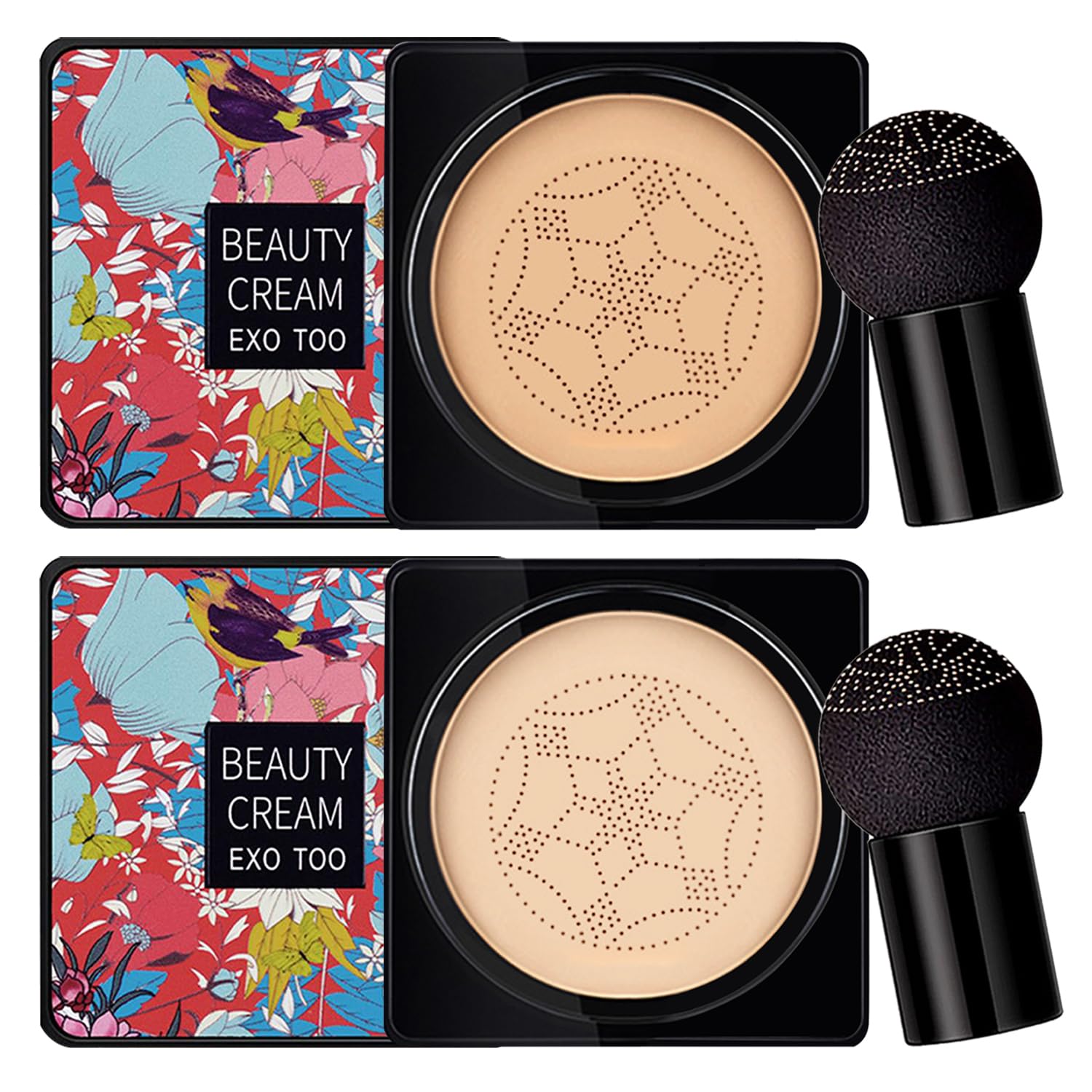 - 🌸PACKAGES INCLUDES: 1 x CC Cream ( Natural) & 1 x CC Cream ( Ivory) & 2 x Mushroom Head Sponge. Portable Air Cushion CC Cream retouches facial blemishes and enlarged pores, with a specially designed skin-friendly mushroom-shaped sponge puff for even and quick application