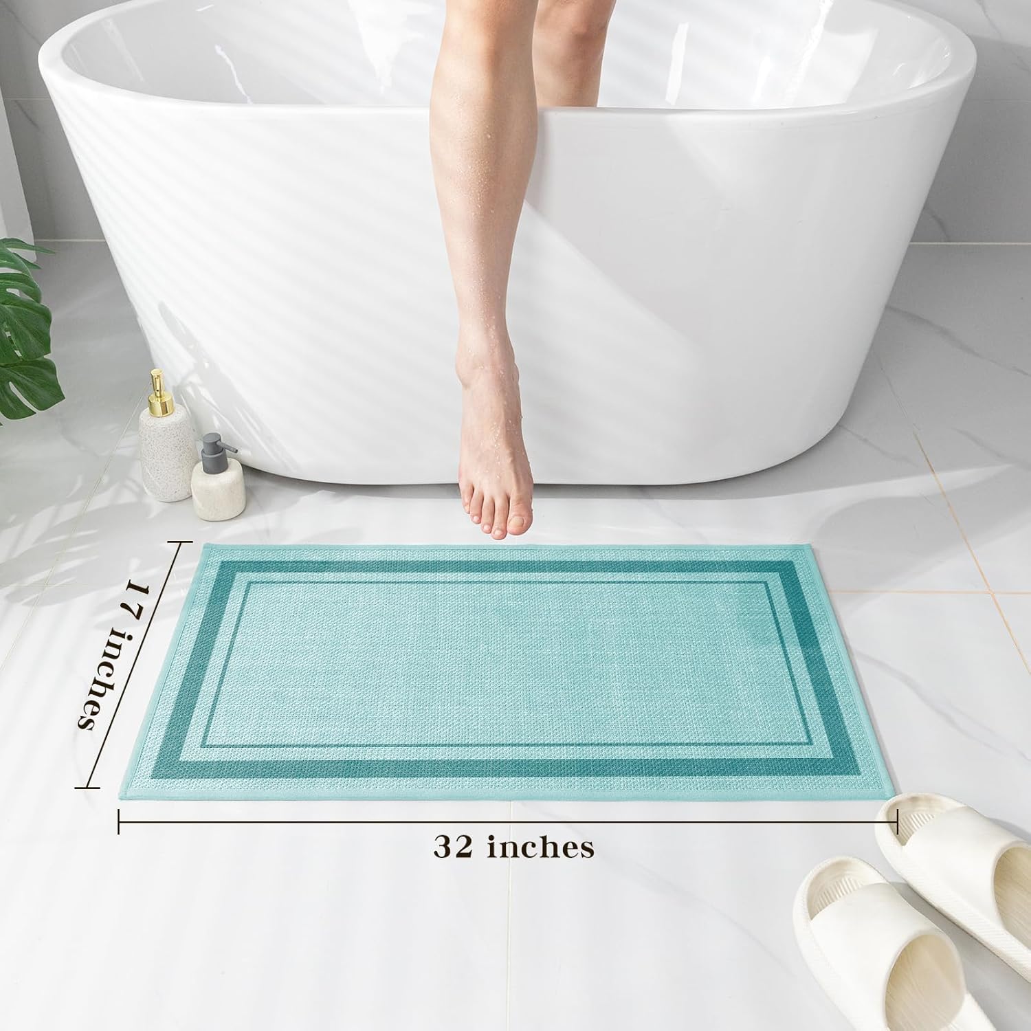 chakme Bathroom Rugs Mat 32x17, Ultra Thin Non Slip Bath Mat Quick Dry Absorbent Bath Mat for Bathroom Floor, (Light Blue, 32"x17")