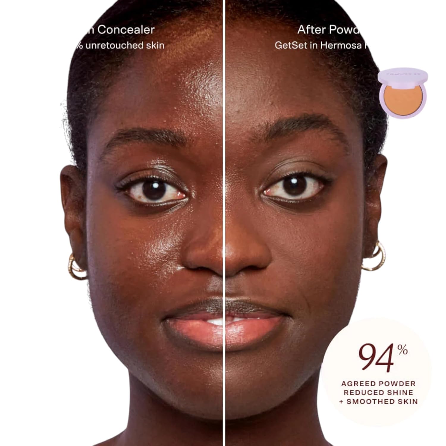 - TRANSFER-PROOF + SWEAT-PROOF: This advanced powder with coated hydrophobic silica makes any base sweat-proof, humidity-proof, and transfer-proof for 12-hour long-lasting wear