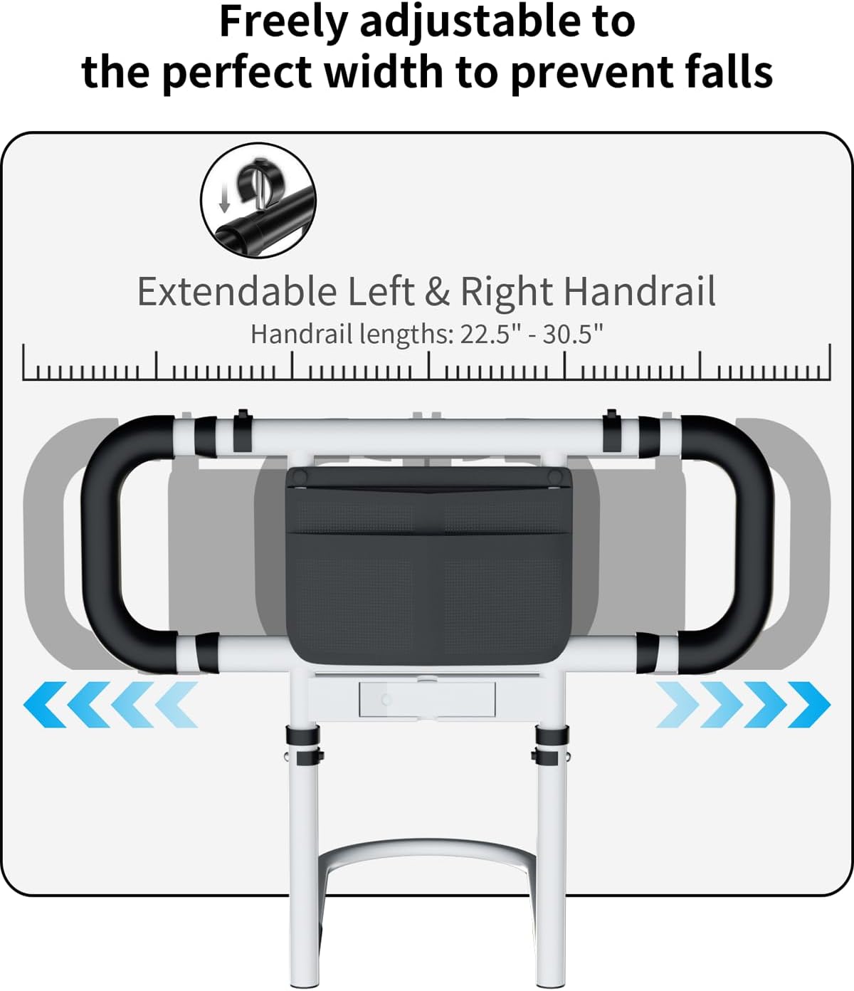 - Bedrails for Elderly Adults Grab Bar Bed Handrails: The bed rails for elderly adults safety are paired with two freely adjustable left and right grips to prevent falls. Both sides are adjustable in 5 levels, 0.5 inches per level from 22.5 inches to 30.5 inches.