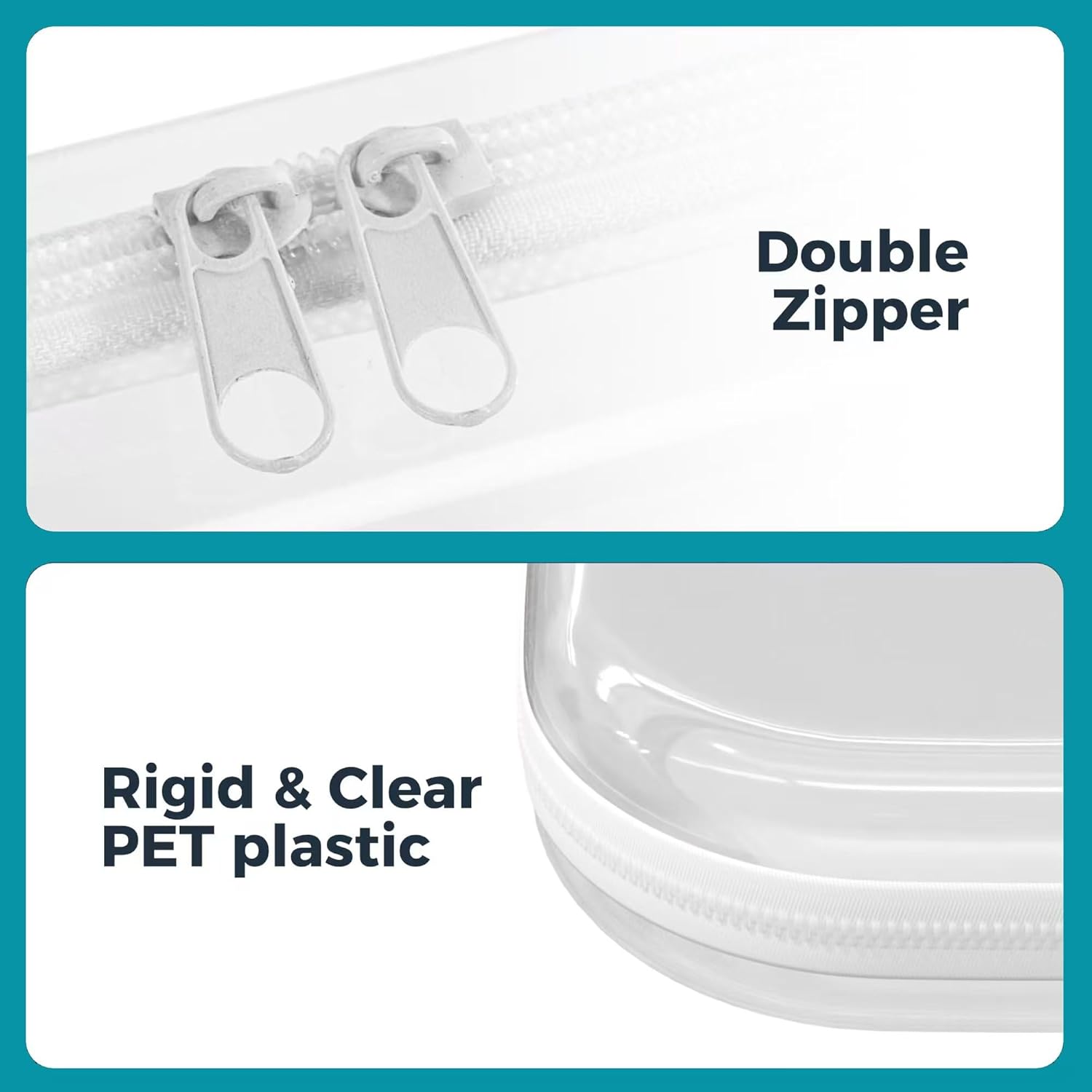 - 【Travel-Ready Design】 TSA-friendly transparent travel bags for toiletries let you instantly identify contents. Water-resistant hard zipper case prevents spills in luggage. Medium case fits 3-4oz bottles for carry-ons. Use small cases as clear makeup bags for lipsticks or zippered hard pouches for cables/medications.