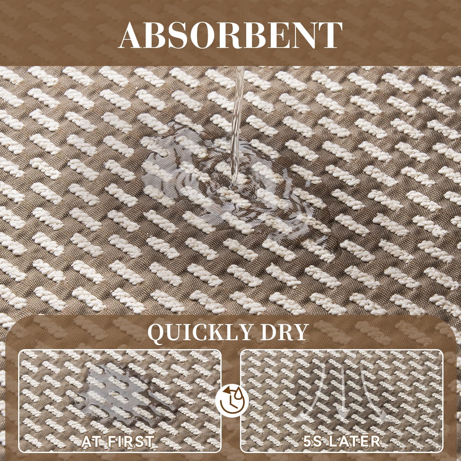 - Super Absorbent: Crafted with high-quality absorbent polyester, these bath mats for bathroom can quickly lock the small water droplets from wet feet after a shower. Absorbent bath mat will effectively keep the bathroom floor dry and clean, reducing the risk of slips and water stains.