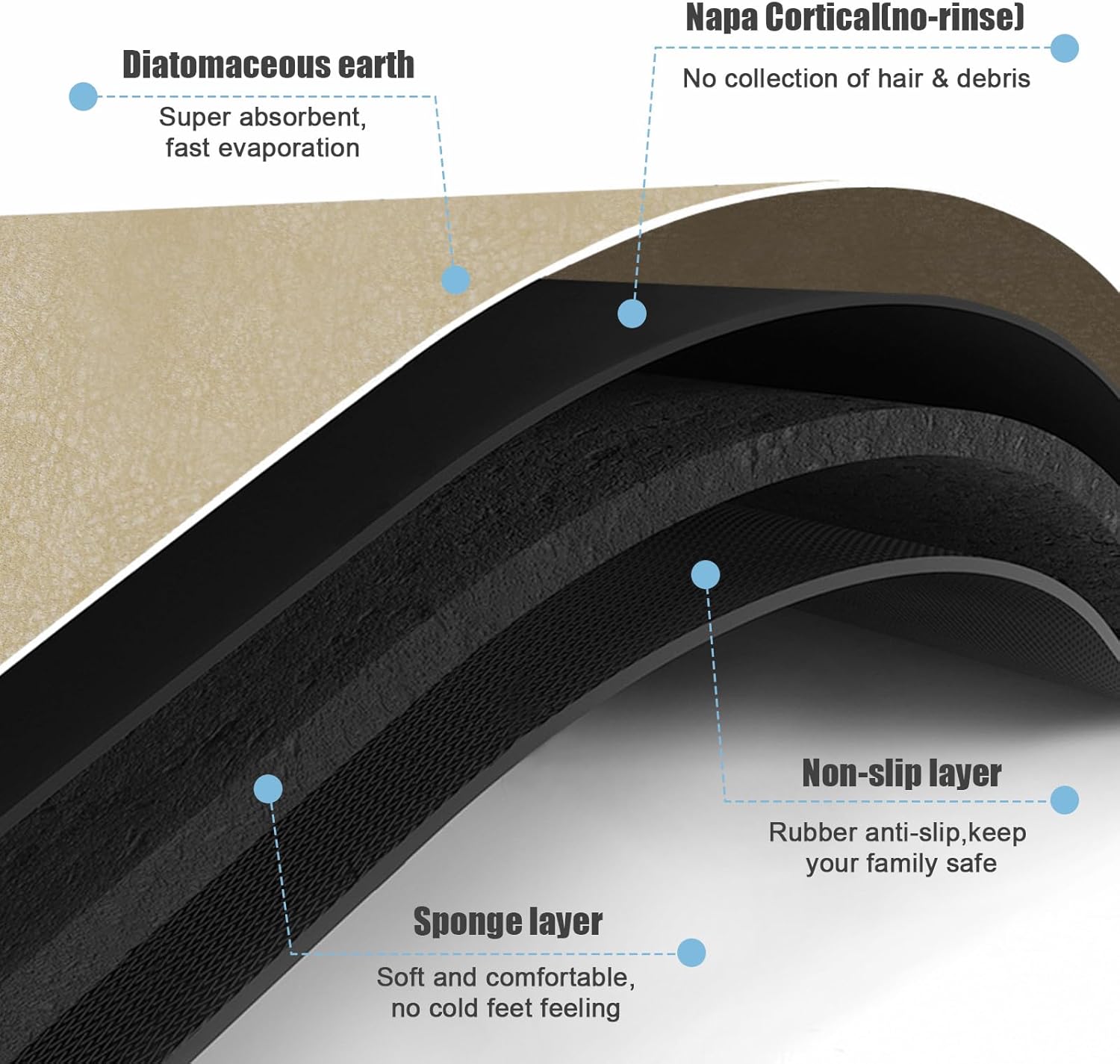 - 【Super Absorbent & Quick Dry】These bathroom mat quick dry are designed with a Faux suede surface, Sabsorbs water efficiently, no water accumulation. bathroom rug absorbs dripping water in 3 seconds when you come out from the bathtub or shower, With its quick-drying design makes the bath mat dry quickly, Keep the floor clean and dry to keep your home comfortable and clean.