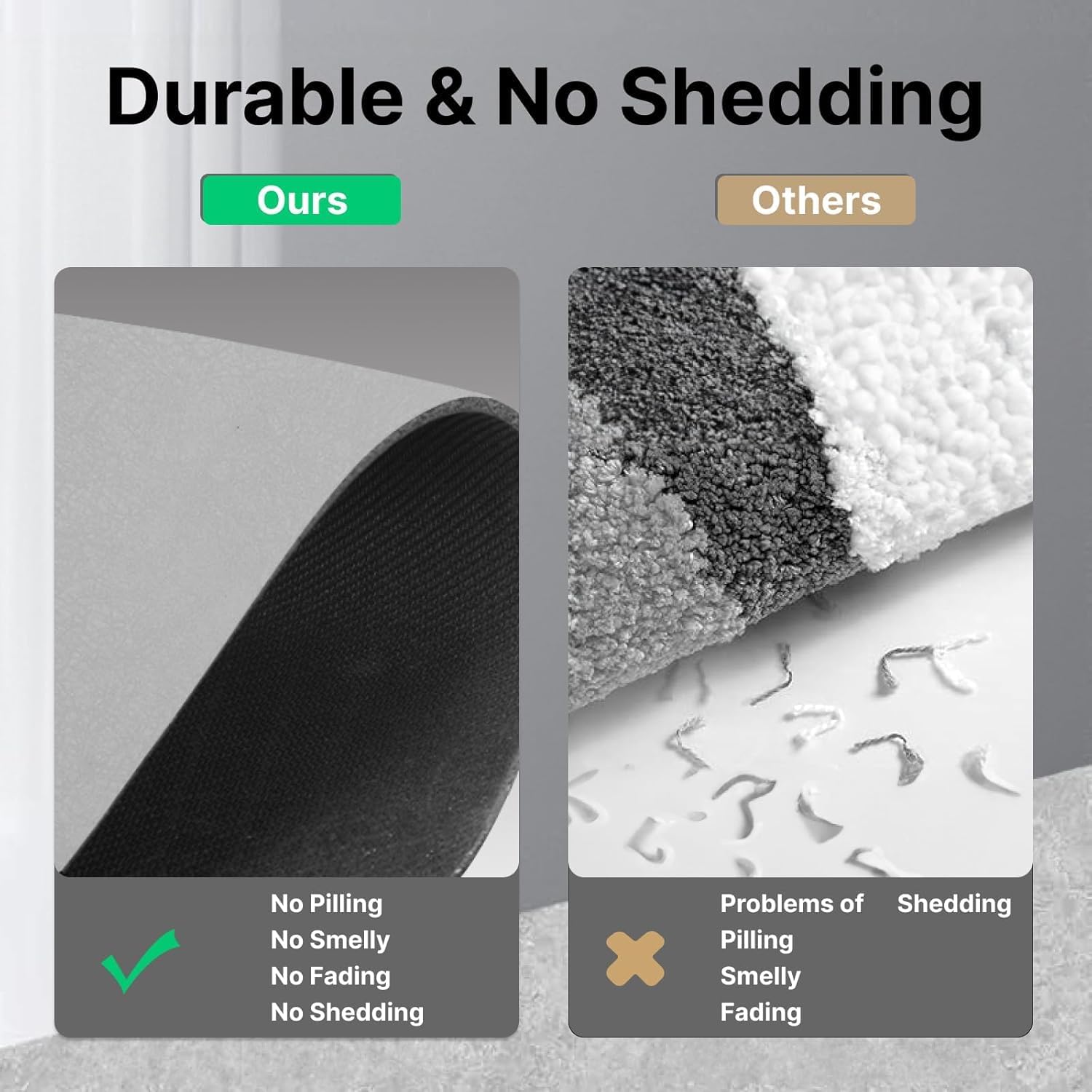 - 【Rubber Non Slip Bath Mat】Our bathroom mats the bottom is made of natural rubber, flatly without skidding or curling up, preventing the bathroom floor mat from shifting or sliding, even on wet tile. so it can be firmly attached to the ground, preventing the elderly and children from slipping. Hurry to say goodbye to traditional slippery TPE/TPR backed bath rugs for bathroom