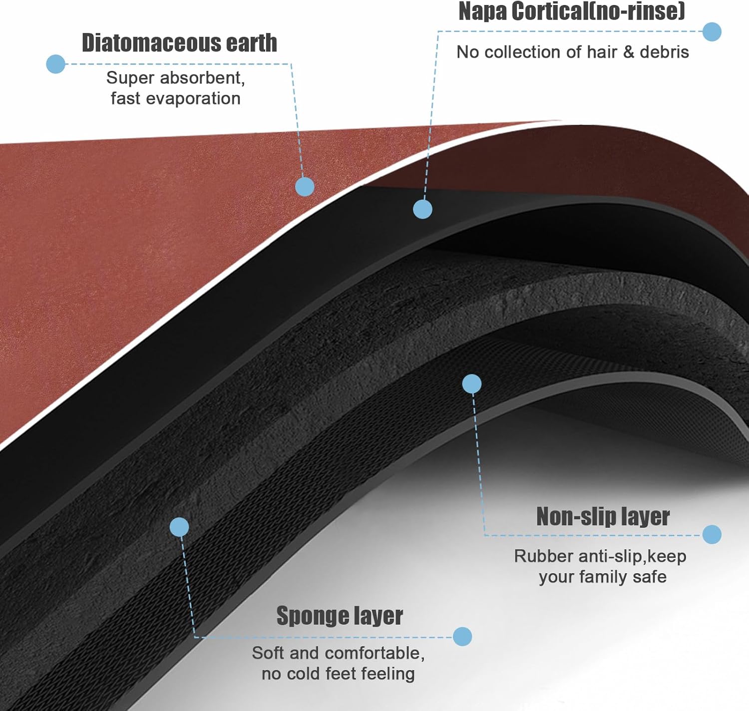 - 【Easy to Clean】Bath mats with new hair-free technology layer, water evaporates quickly, dirt attach to the surface,stain-resistant and easy to clean. Therefore, you don’t need to dry or clean the washable bath mat every day. If you want to clean it after long-time use, simply wipe the washable bathroom rugs with a wet cloth, or rinse it with shower nozzle. The bath rug for bathroom looks as good as new now