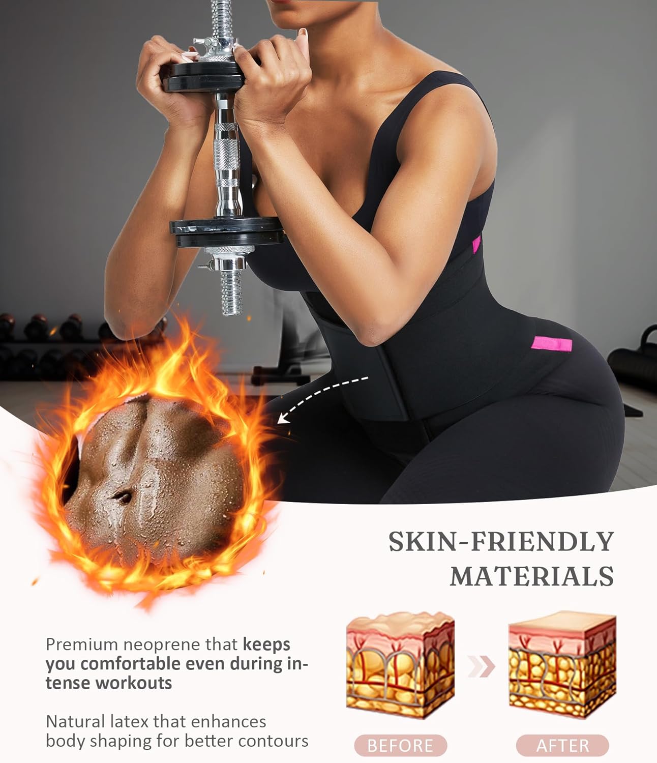 - Premium Stretch Fabric: Our waist trainer crafted from a blend of polyamide and spandex for targeted support and comfortable compression. The breathable material promotes natural heat retention during activity. Attention:Contains Latex Fiber. May cause allergic reactions in sensitive individuals. If you are allergic to latex or if you are not sure about this, please consult to your doctor for instructions before usage.