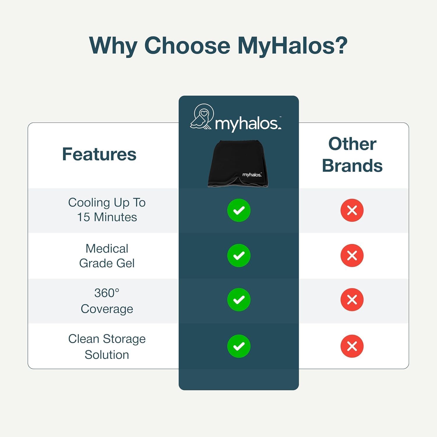 - { Odor-Free Storage Pouch } Every MyHalos headache wrap comes with a convenient resealable pouch to keep your cold headache wrap clean, dry, and odor-free in the freezer/fridge. Now you'll always have your hat ice pack at hand whenever you need a cooling migraine mask or headache ice pack head wrap.