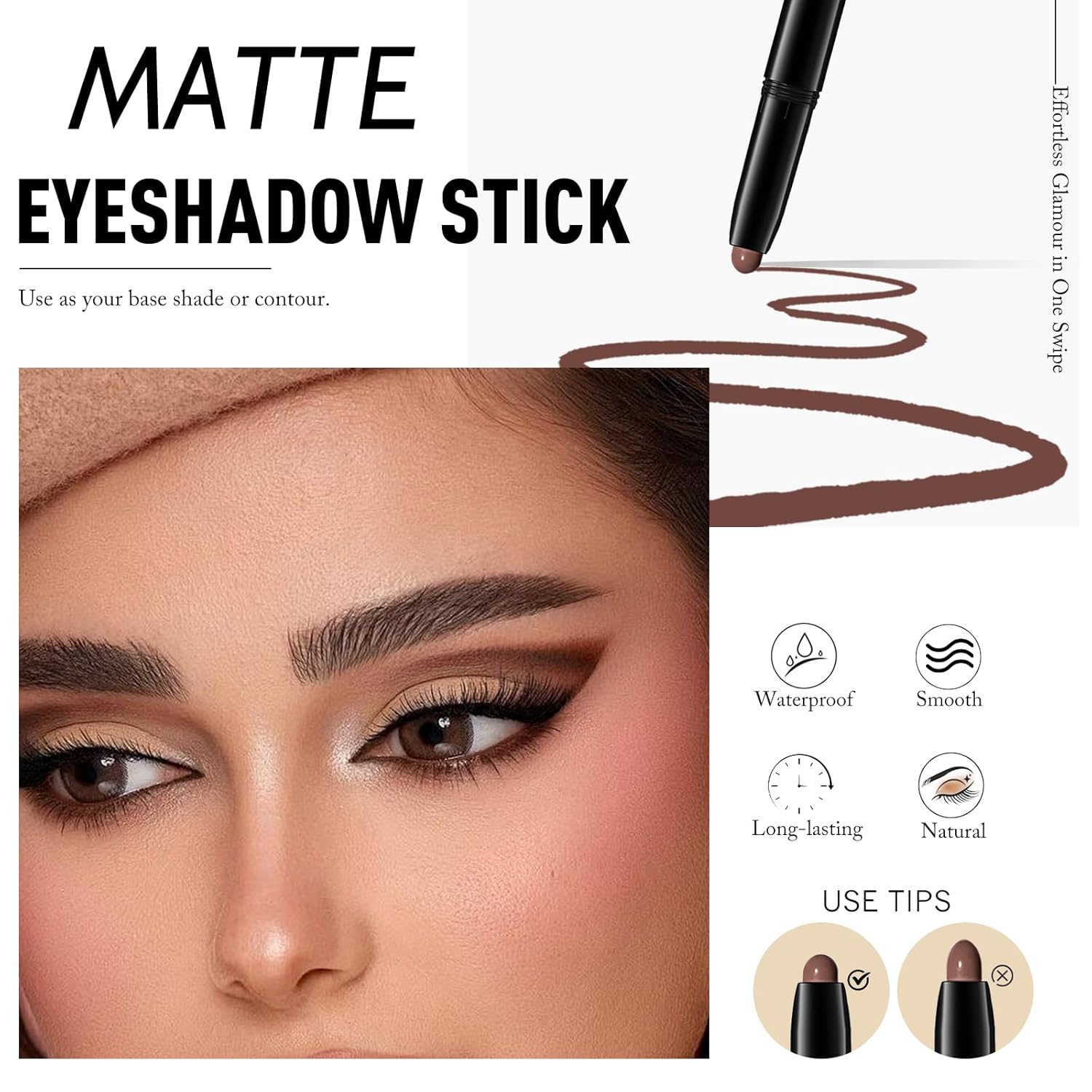 - Multi-Use Makeup: Use as an eye brightener stick, base, contour, or highlighter. The versatile matte eyeshadow stick simplifies your routine, saving time and space in your makeup bag