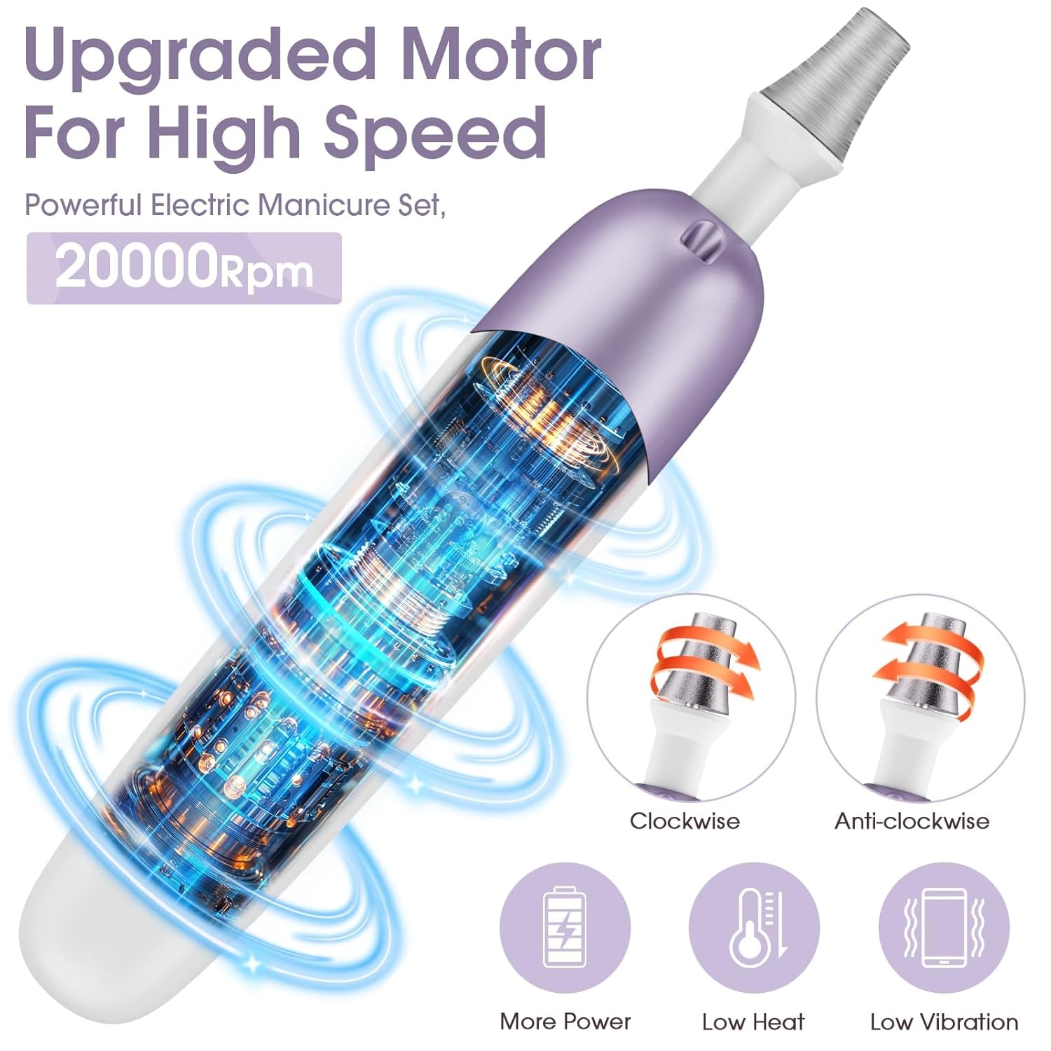 - Lightweight, easy to use, Even for Beginner: This Portablenail dril machine is lightweight, and portable with you wherever you go, ergonomic body design for comfortable holding, speed and direction controlling (forward and reverse rotation directions) with two different button, Easy to use; EVEN BEGINNERS CAN USE THIS ELECTRIC NAIL FILE WITH EASE !