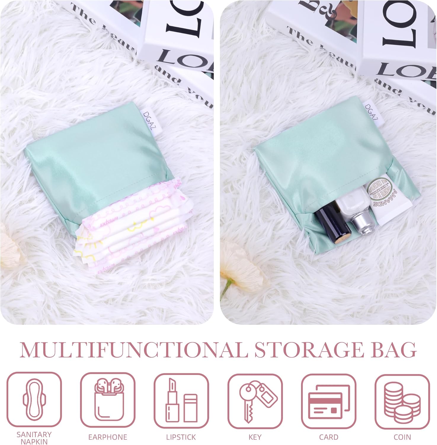 DGAZ silk Sanitary Napkin Storage Bag, Period Bags for Teen Aged Girls, Portable for Panty Liners/Menstrual Cup/Small Tampons,Mini Makeup Bags for Purse(Vert Deau)