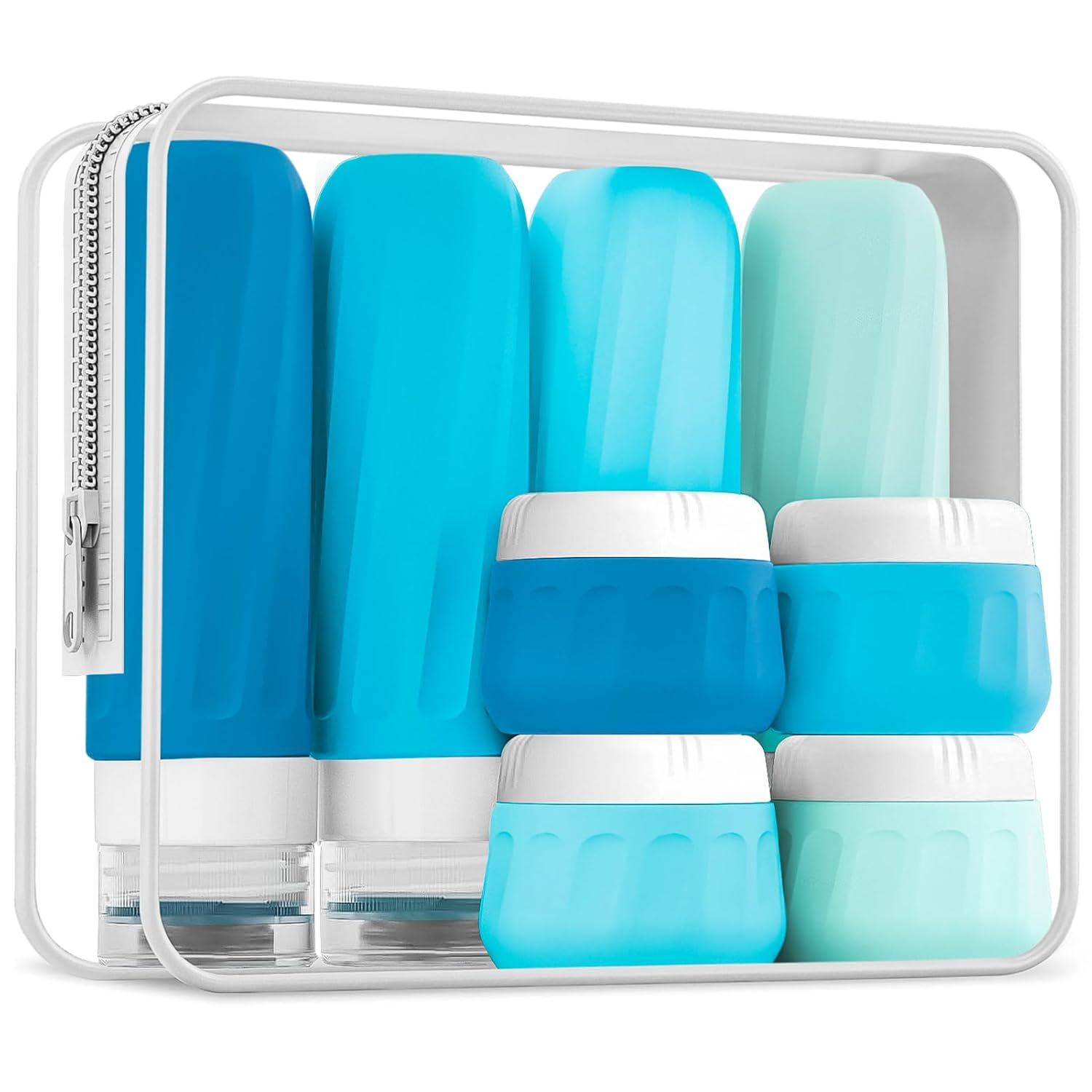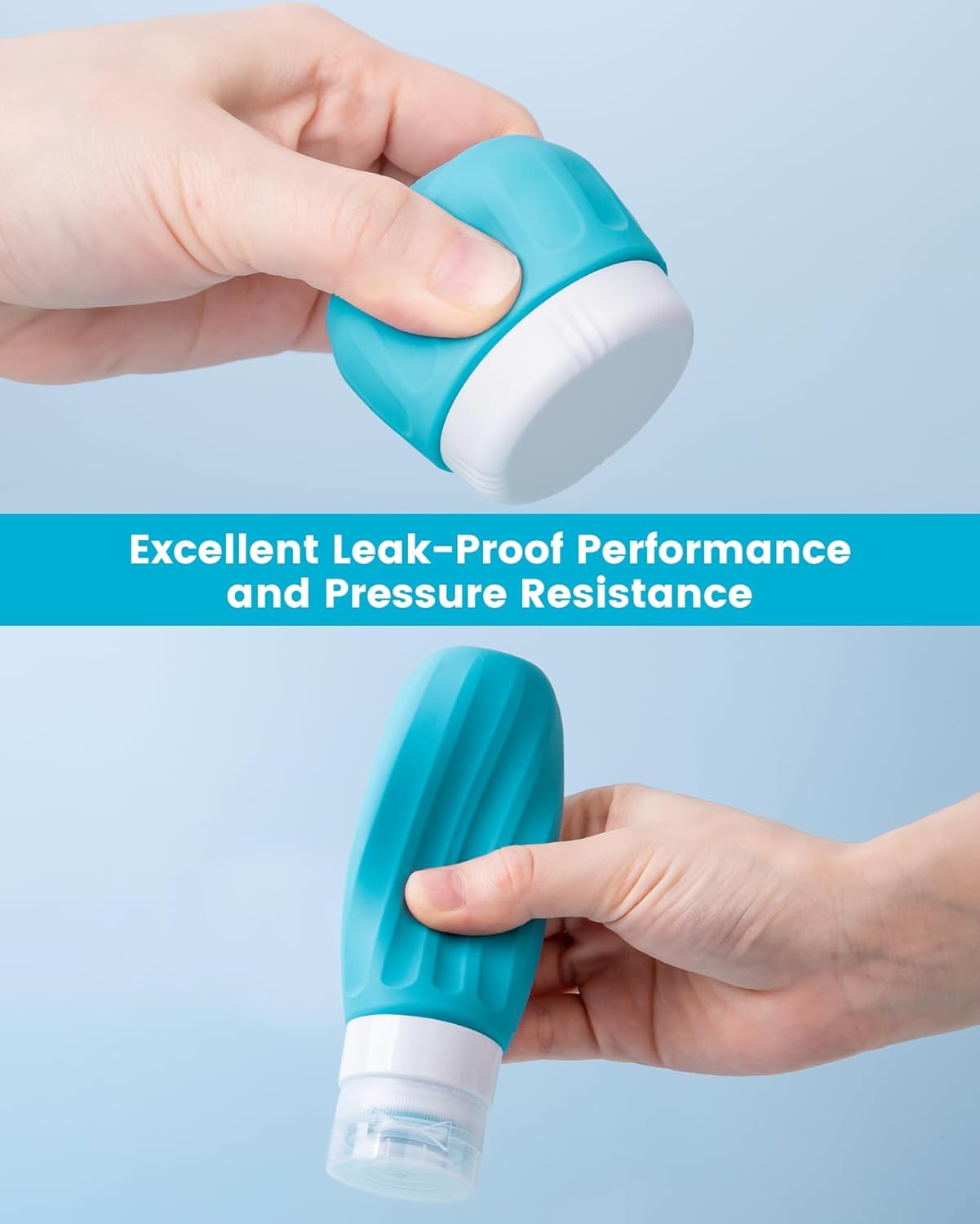 Travel Bottles for Toiletries, 10 Pack, TSA Approved, 3oz/90ml Silicone, Leak Proof, Wide Mouth, Reusable, Travel, Vacation, Plane Trip, Camp