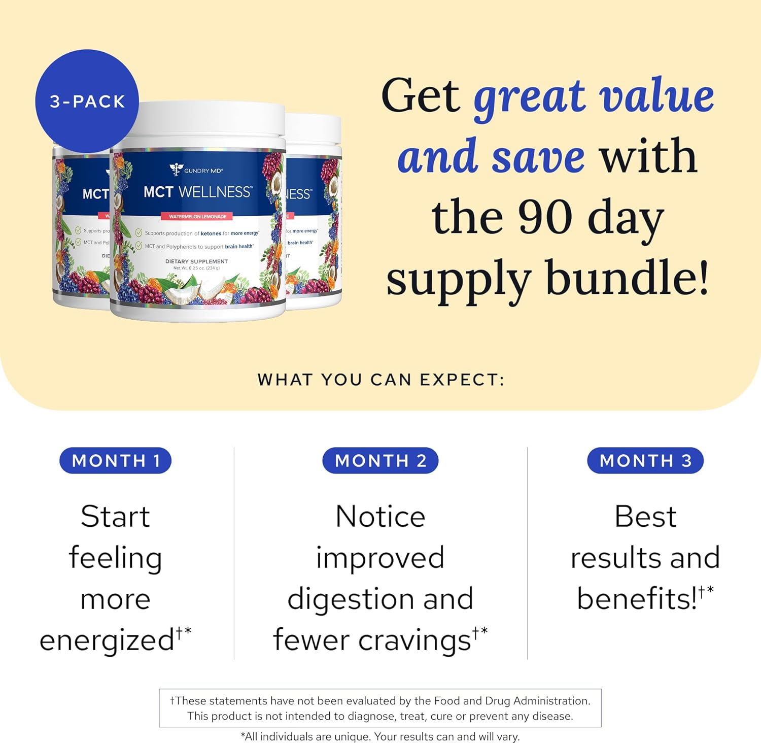 Gundry MD MCT Wellness Powder to Support Energy, Ketone Production and Brain Health, Keto Friendly, Sugar Free (90 Day Supply, Watermelon Lemonade)