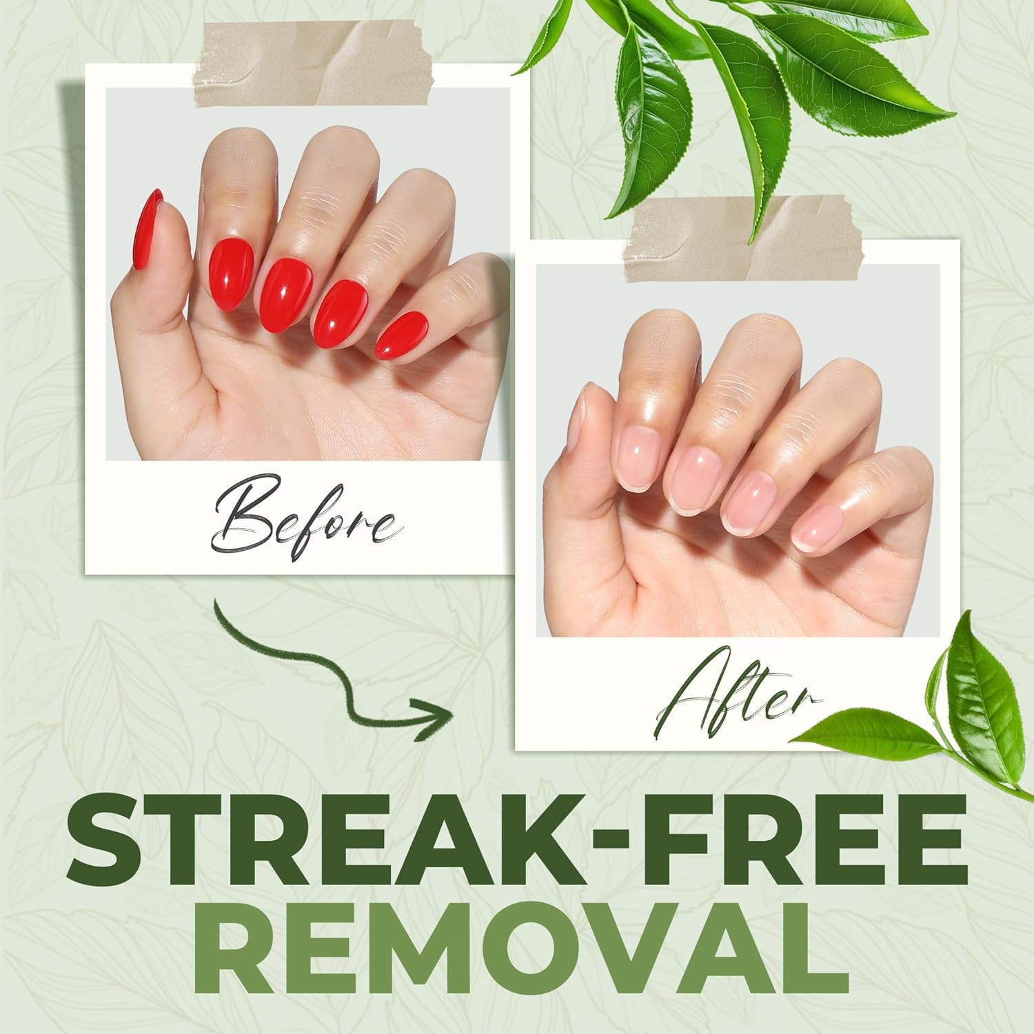 - Pleasant Scent: UNA GELLA botanical formula nail polish remover offers a fresh, soothing aroma that makes polish removal a relaxing experience, leaving behind a light, natural green tea scent, unlike harsh 100% acetone-based removers