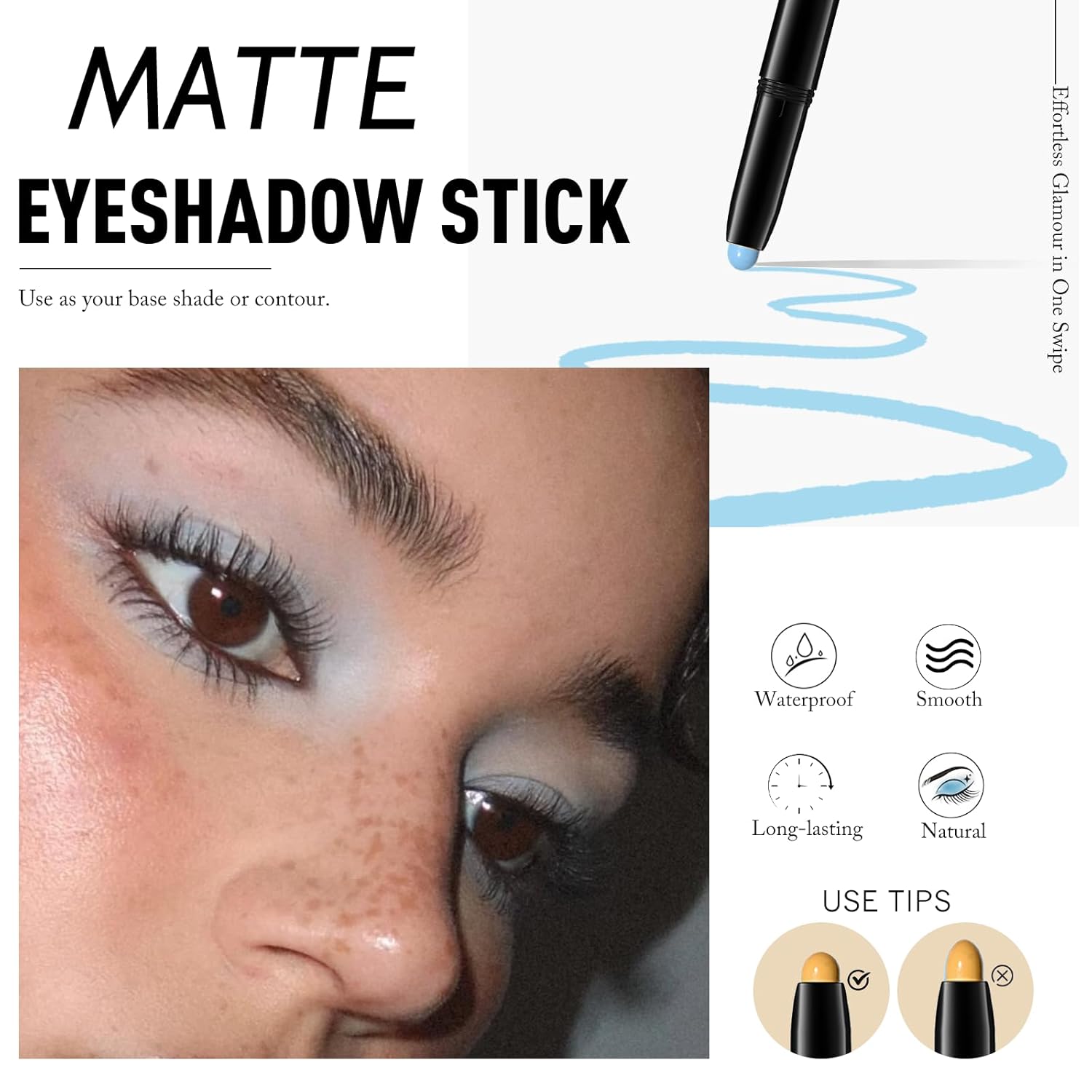 - Multi-Use Makeup: Use as an eye brightener stick, base, contour, or highlighter. The versatile matte eyeshadow stick simplifies your routine, saving time and space in your makeup bag