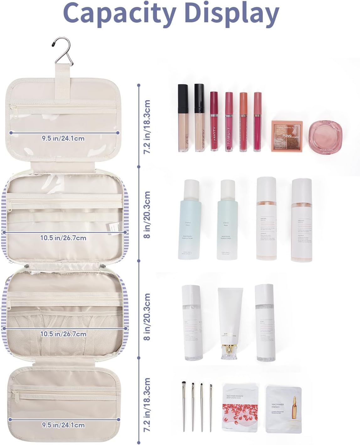 Narwey Striped Hanging Toiletry Bag for Women Travel Makeup Bag Organizer Toiletries Bag for Travel Size Essentials Accessories Cosmetics (Greyish Blue Stripe (Medium))