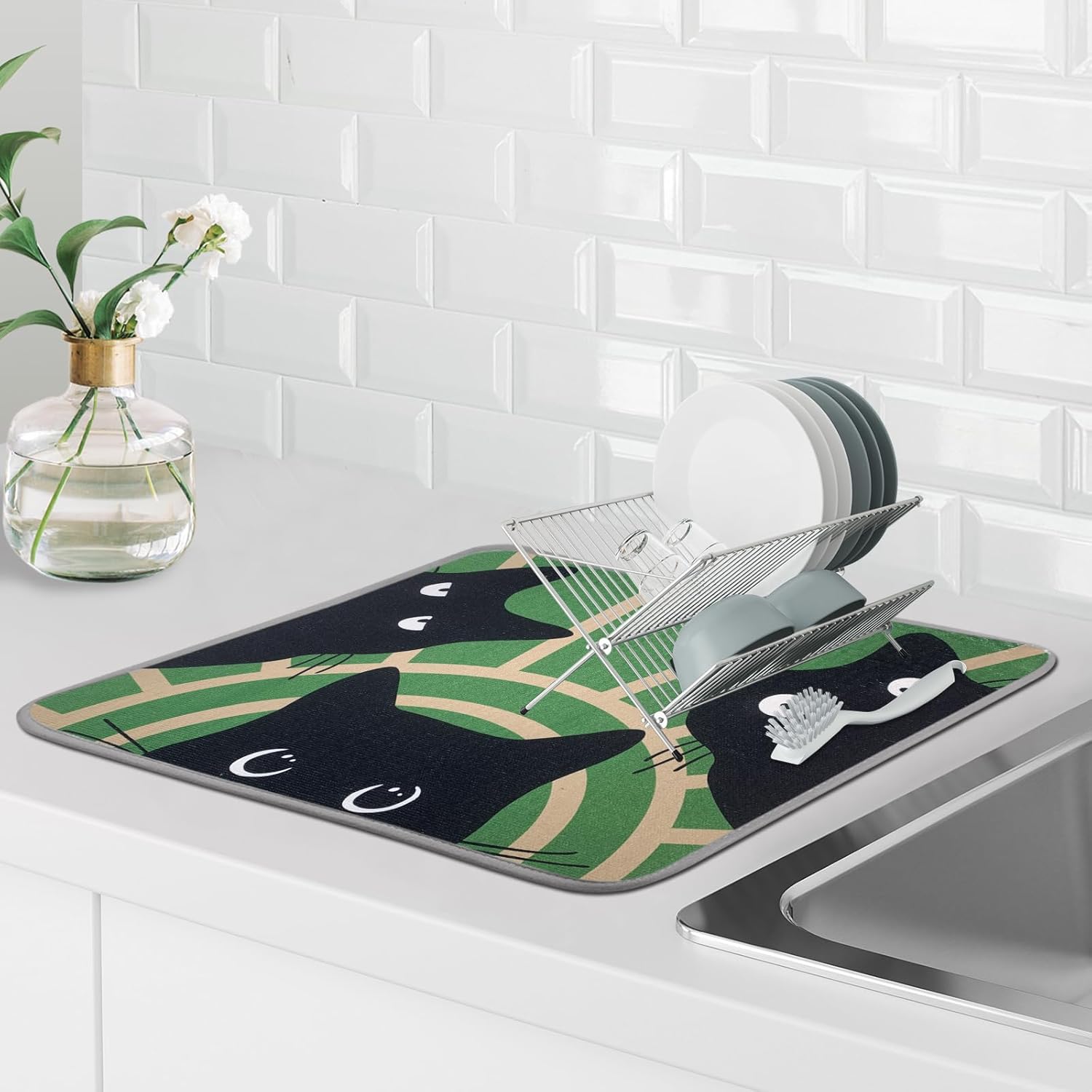 SHIYUE Dish Drying Mat for Kitchen Counter Super Absorbent Spring Kitchen Decor Microfiber Drying Matainers Rack Fast Pad Dish Drainer Mats(Three Cats,18''x24'')
