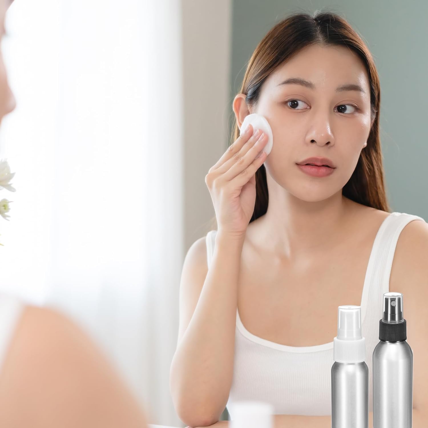 HARFINGTON 3pcs Aluminum Fine Mist Spray Bottles 120ml/4oz Metal Small Liquid Alcohol Refillable Travel Container with White Plastic Nozzle Cap for Perfume Skincare Cosmetic Storage Bottle