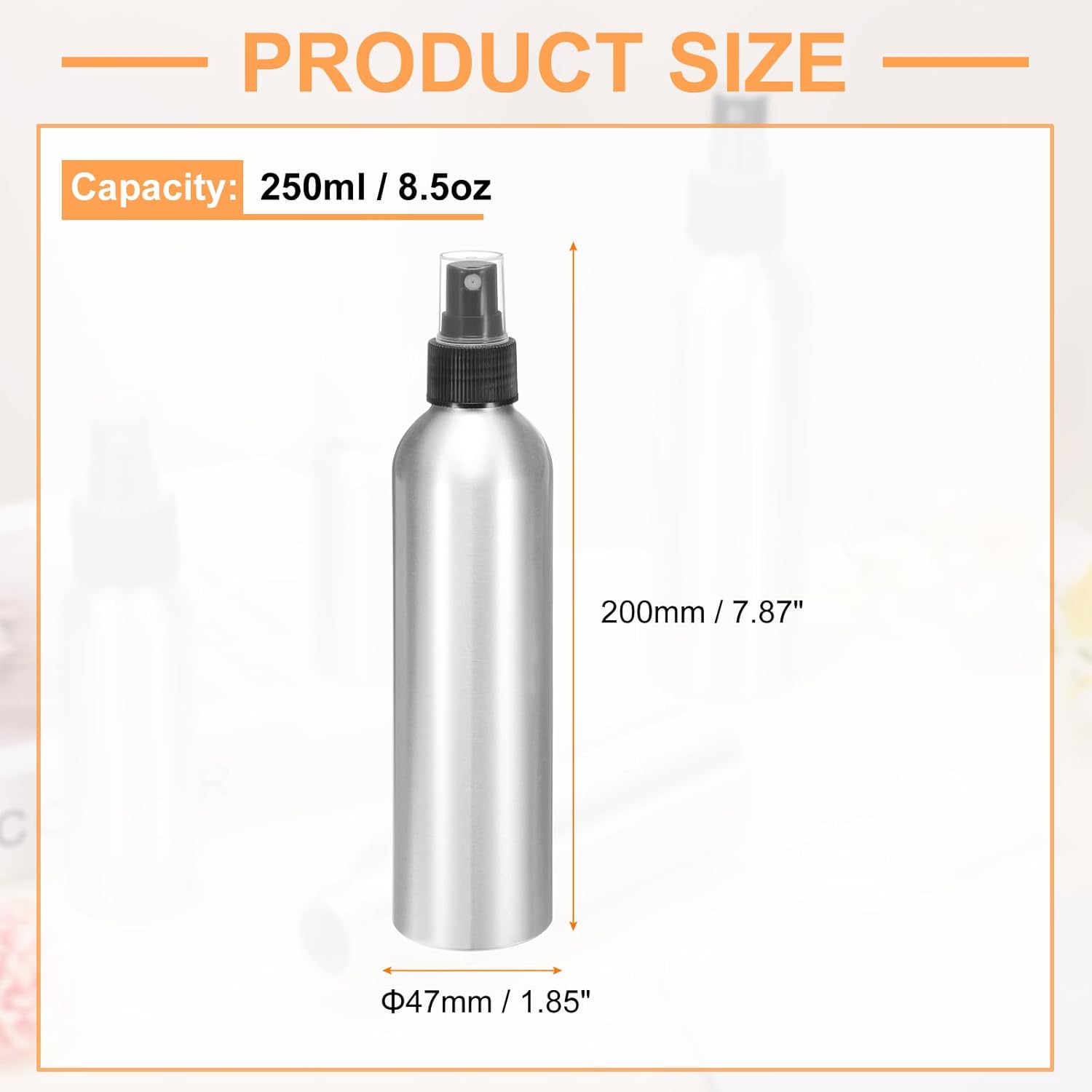 HARFINGTON Aluminum Fine Mist Spray Bottles 250ml/8.5oz Metal Small Liquid Alcohol Refillable Travel Container with Black Plastic Nozzle Cap for Perfume Skincare Cosmetic Storage Bottle