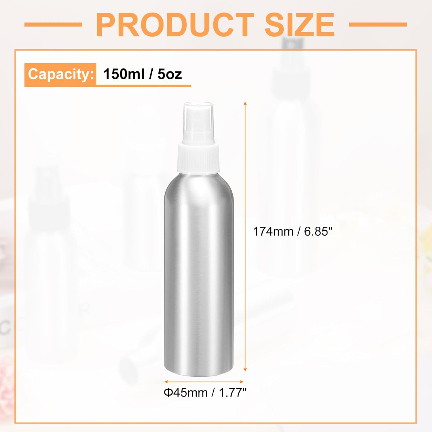HARFINGTON 5pcs Aluminum Fine Mist Spray Bottles 150ml/5oz Metal Small Liquid Alcohol Refillable Travel Container with White Plastic Nozzle Cap for Perfume Skincare Cosmetic Storage Bottle