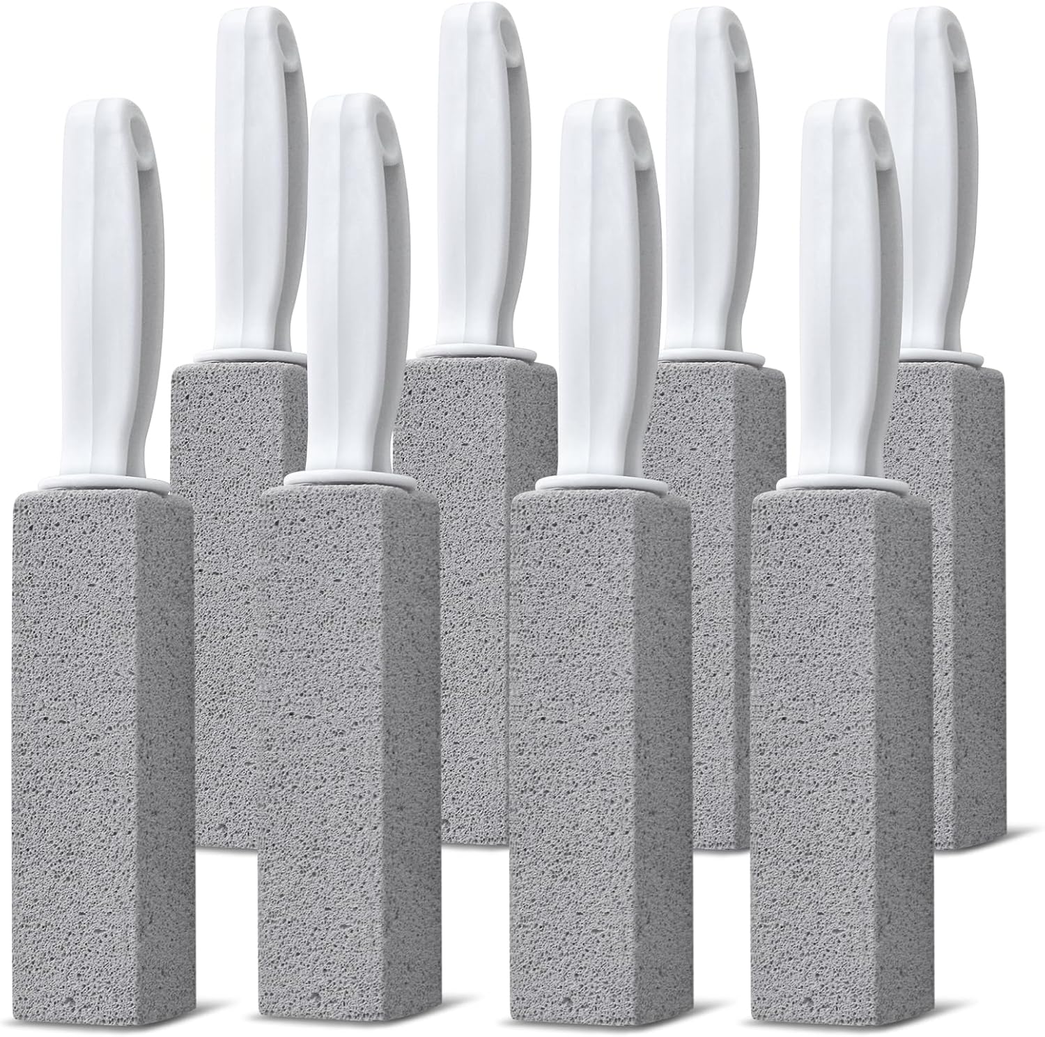 - Strong and Comfortable Handle Design: The package includes 8 Pack toilet pumice stones with handles. The long handle of the pumice stone is designed to fit most people's hands, making it easy to hold and providing a better grip. Stubborn stains can be quickly removed by simply rubbing the pumice stone. The pumice stone for toilet with handle makes toilet cleaning effortless and protects your hands from stains, making home cleaning a breeze!
