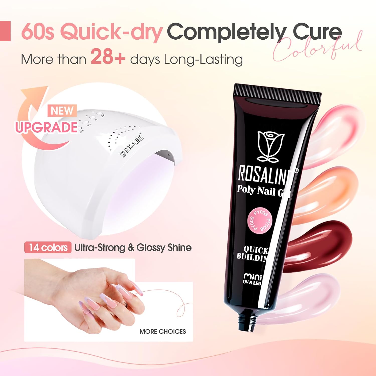 - Salon Quality & Long Lasting: ROSALIND poly nail kit is made of high quality raw materials, after strict production testing, the extension adhesive is of high quality, not easy to fall off, beautiful color, and can protect nails well