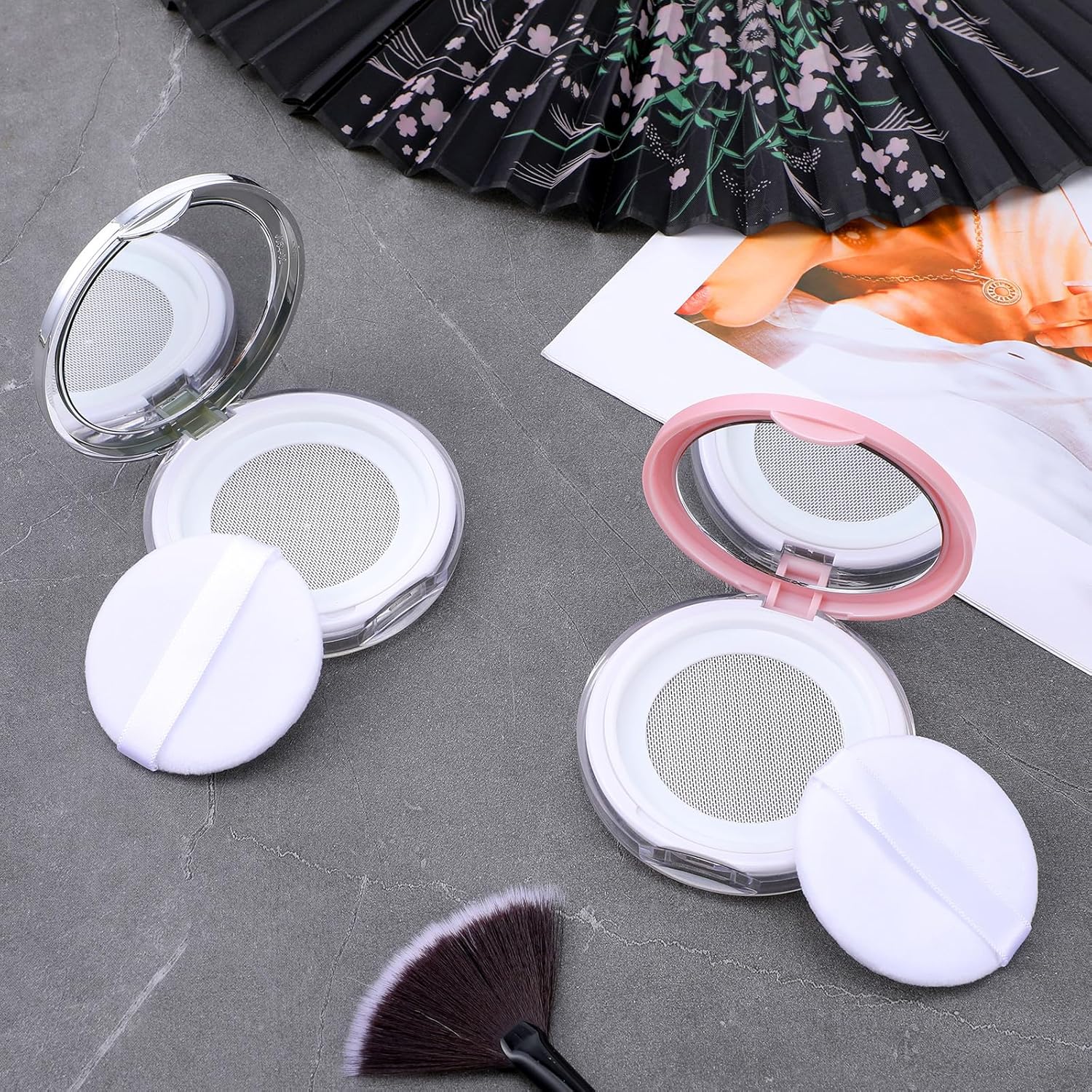 2 Pcs Loose Powder Container with Puff, 0.3-0.7oz Reusable Travel Powder Puff Case Refillable Empty Makeup Compact Box with Mirror for Travel DIY Makeup Cosmetic