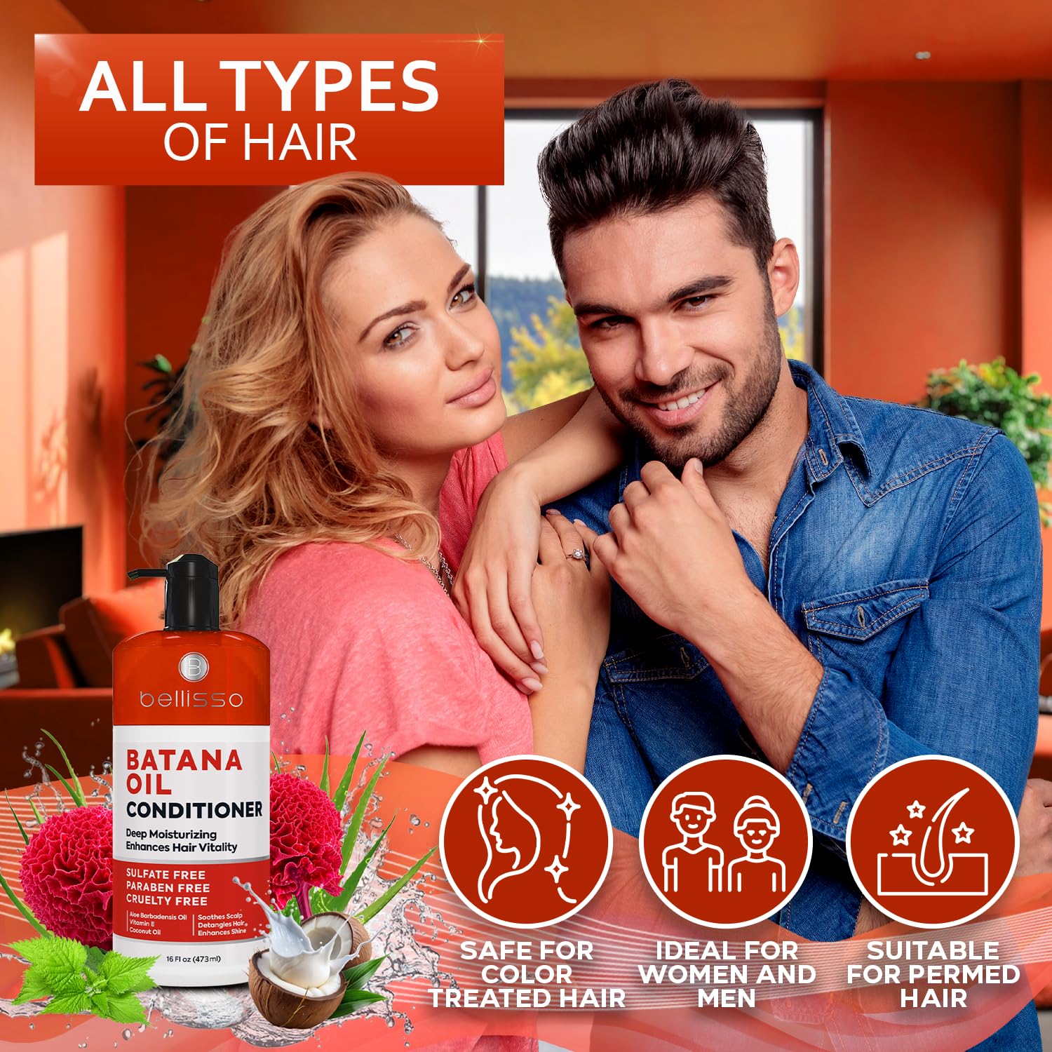 BELLISSO Batana Oil Conditioner for Women and Men - Sulfate Free, Volumizing Treatment for Thinning Hair - Thickening, Volume Boost - 16 Fl Oz