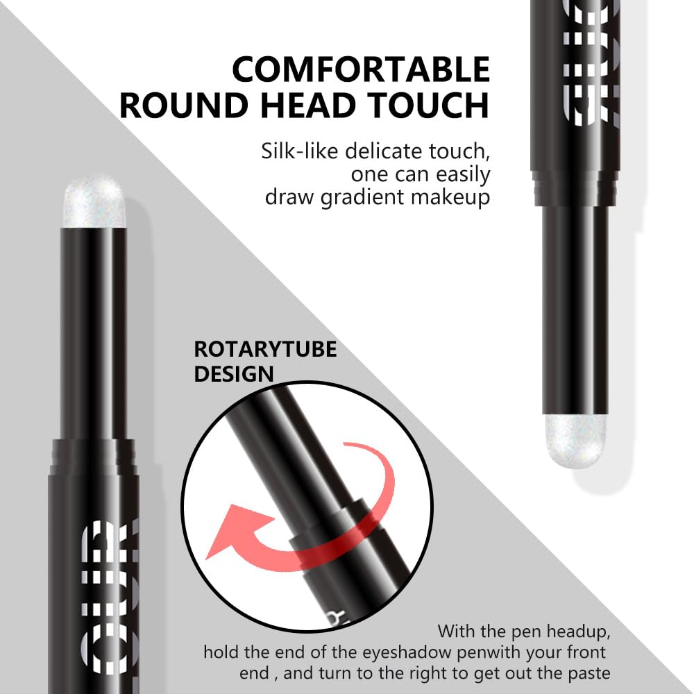 - Silky & Conveniently: Goes on smoothly like silk without clumping,skipping or smudging,perfect for sculpting, shading & defining,not exaggerated glittery.Thick-end eyeshadow crayon for quick-applying on large area,portable and let you to make up & touch up outside so easy.