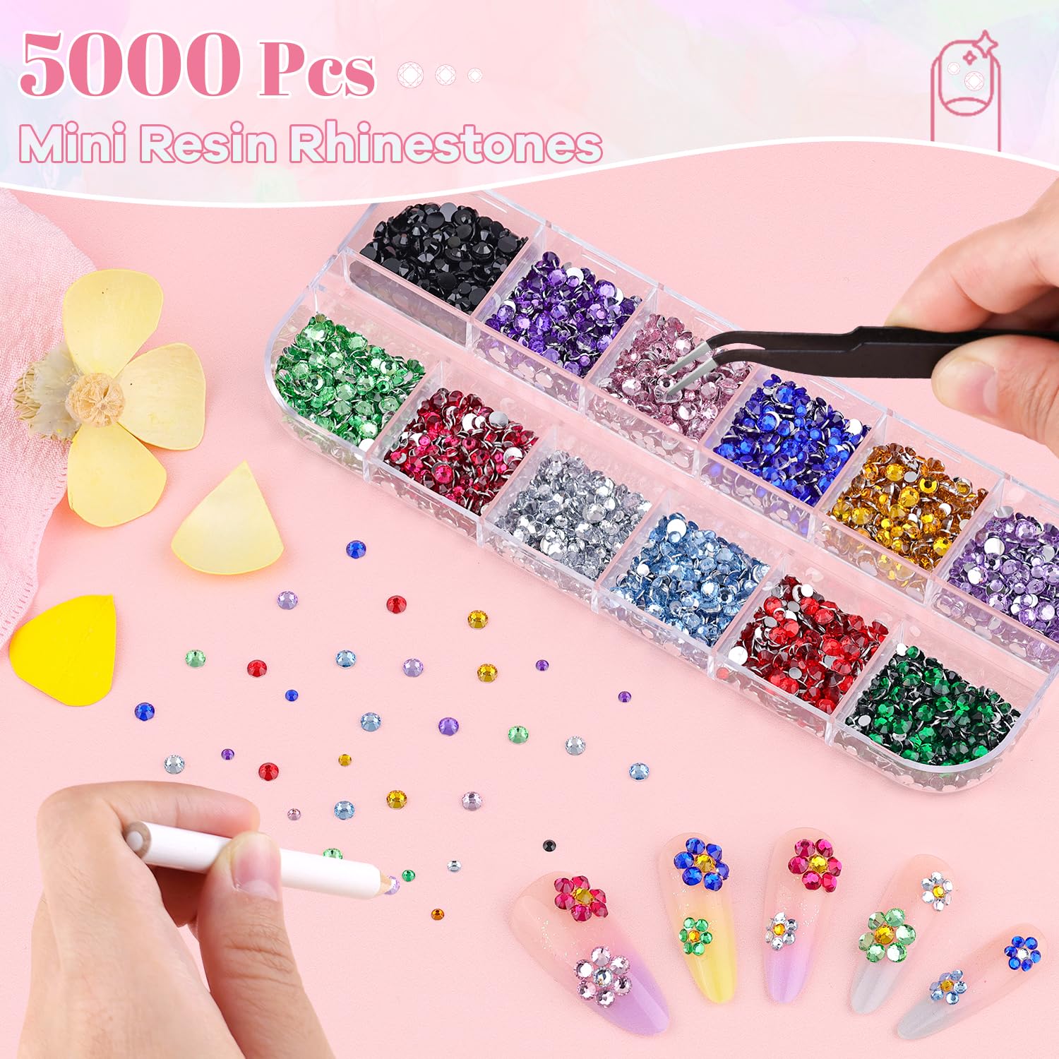 5000Pcs Small Resin Rhinestones for Nail Art with 15ML Nails Rhinestone Glue, Colorful 2/3MM Flatback Bedazzling Gems, Nail Rhinestones and Gems Crystals Charms for Acrylic Tips Manicure Decor