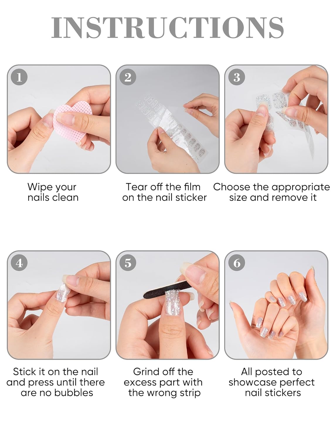 - No UV Light Required: These nail art stickers are designed for effortless application without the need for UV light. Achieve professional-looking nails at home in just minutes, even if you're a beginner