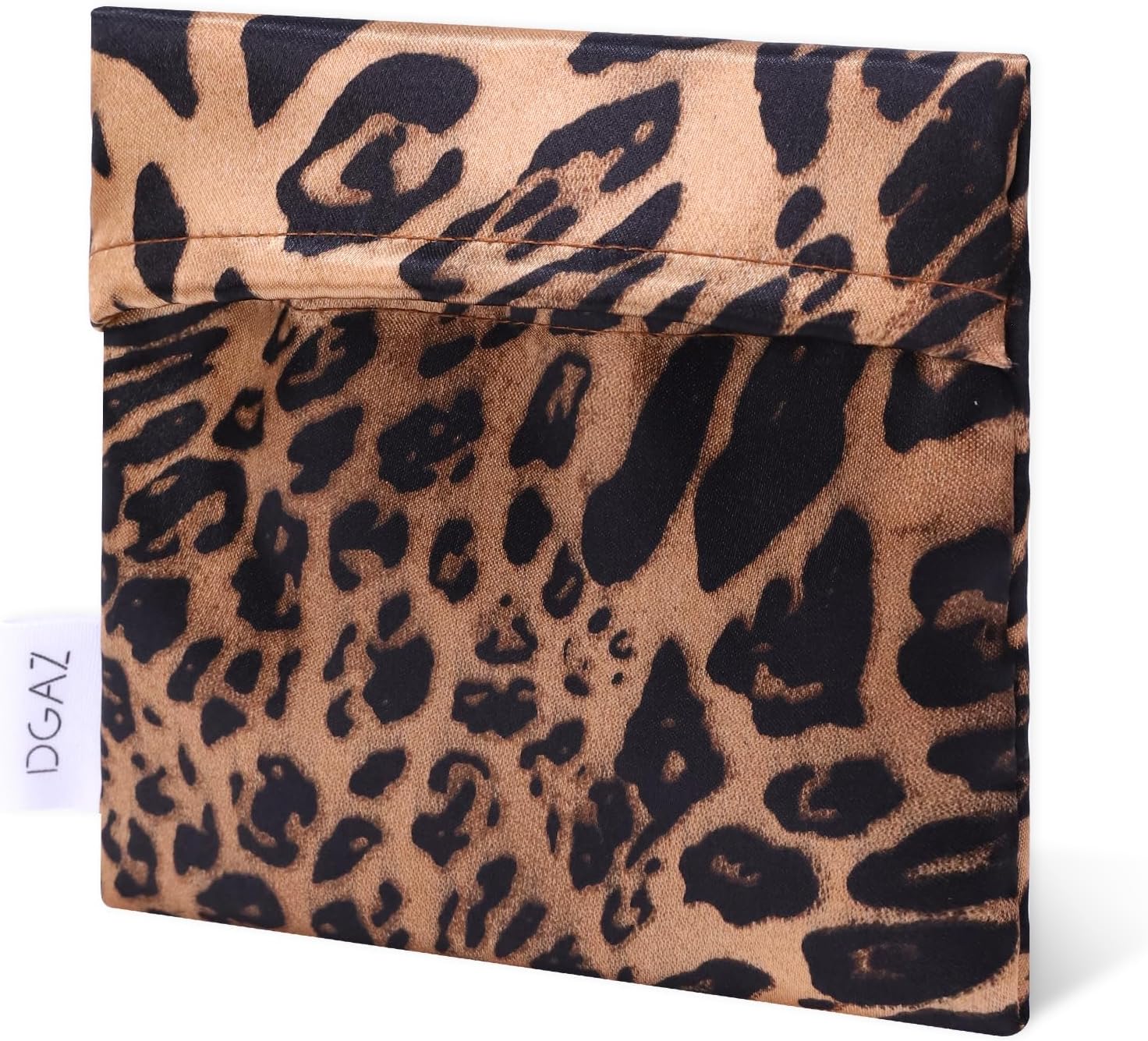 DGAZ Sanitary Napkin Storage Bag, Period Bag for Teen Aged Girls, Portable Period Bag for Panty Liners/Menstrual Cup/Small Tampons,Mini Makeup Bag for Purse(Leopard B)