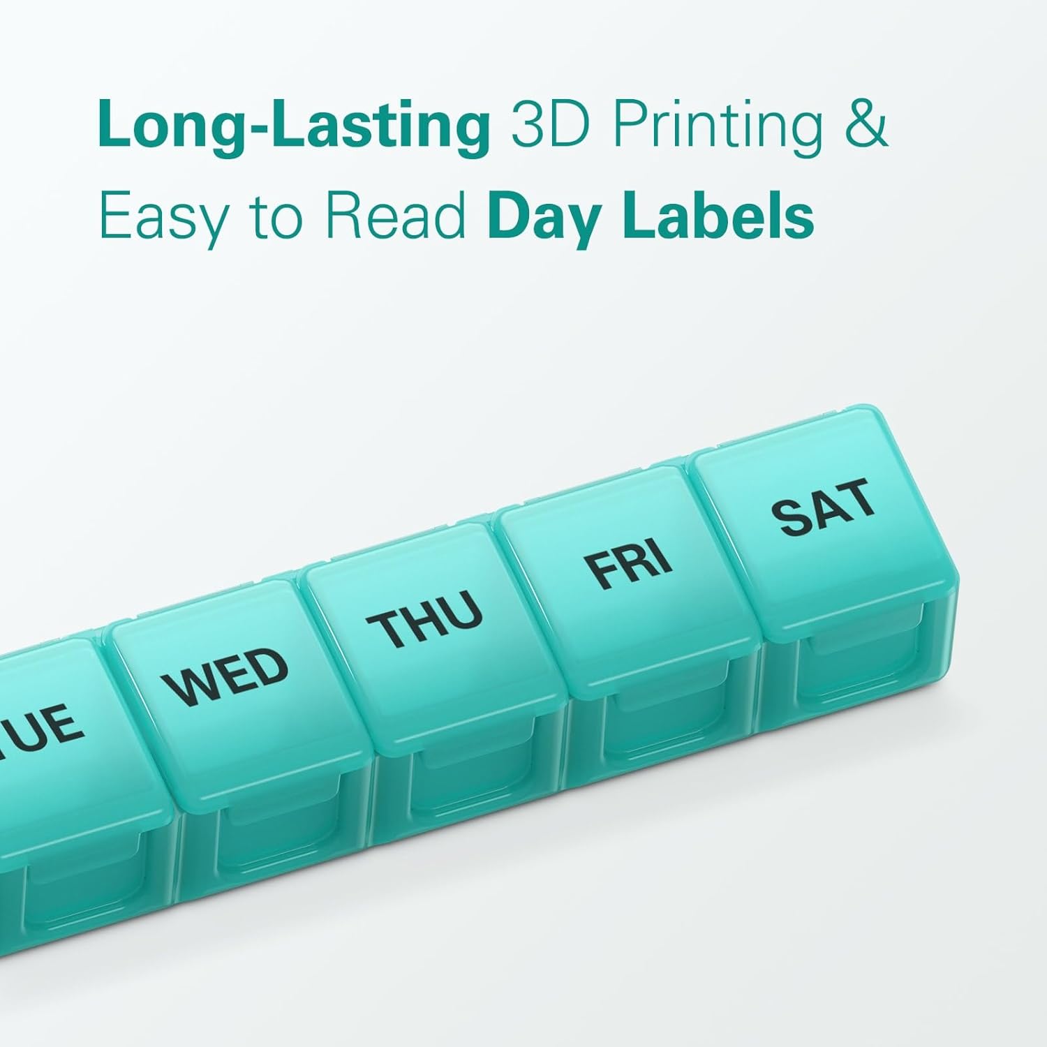- Easy-to-Read Pill Case - The uppercase bold and wear-resistant day labels on the pill cases organizers 7 day make distinguishing the days of the week effortless. BUG HULL pills organizer is made of food grade BPA-Free material, safe for medical use.