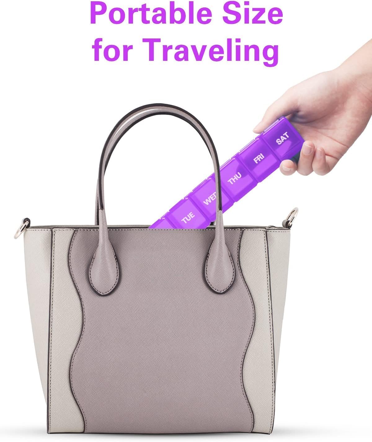 - Perfect for Travel - This oversize of the weekly pill organizer is 9.1'' L x 1.3'' W x 1.1'' H and has 7 individual compartments. Just toss this travel pill organizer with your entire week's worth of supplements into your bag, and you're good to go!