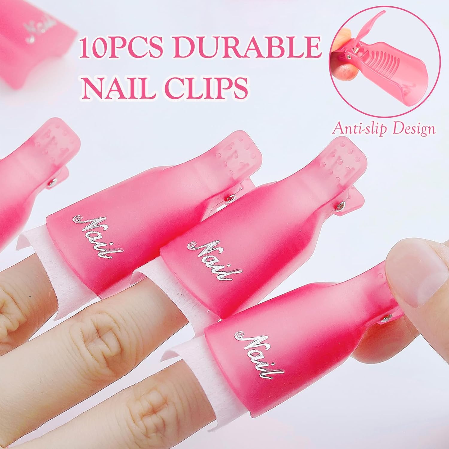 Gel Nail Polish Remover Tools Kit with 10PCS Nail Clips,100ML Nail Polish Remover Bottle,Nail File, Buffer Block,Cuticle Pusher/Peeler,Lint Free Wipes,Nail Brush,Nail Care Cuticle Pads