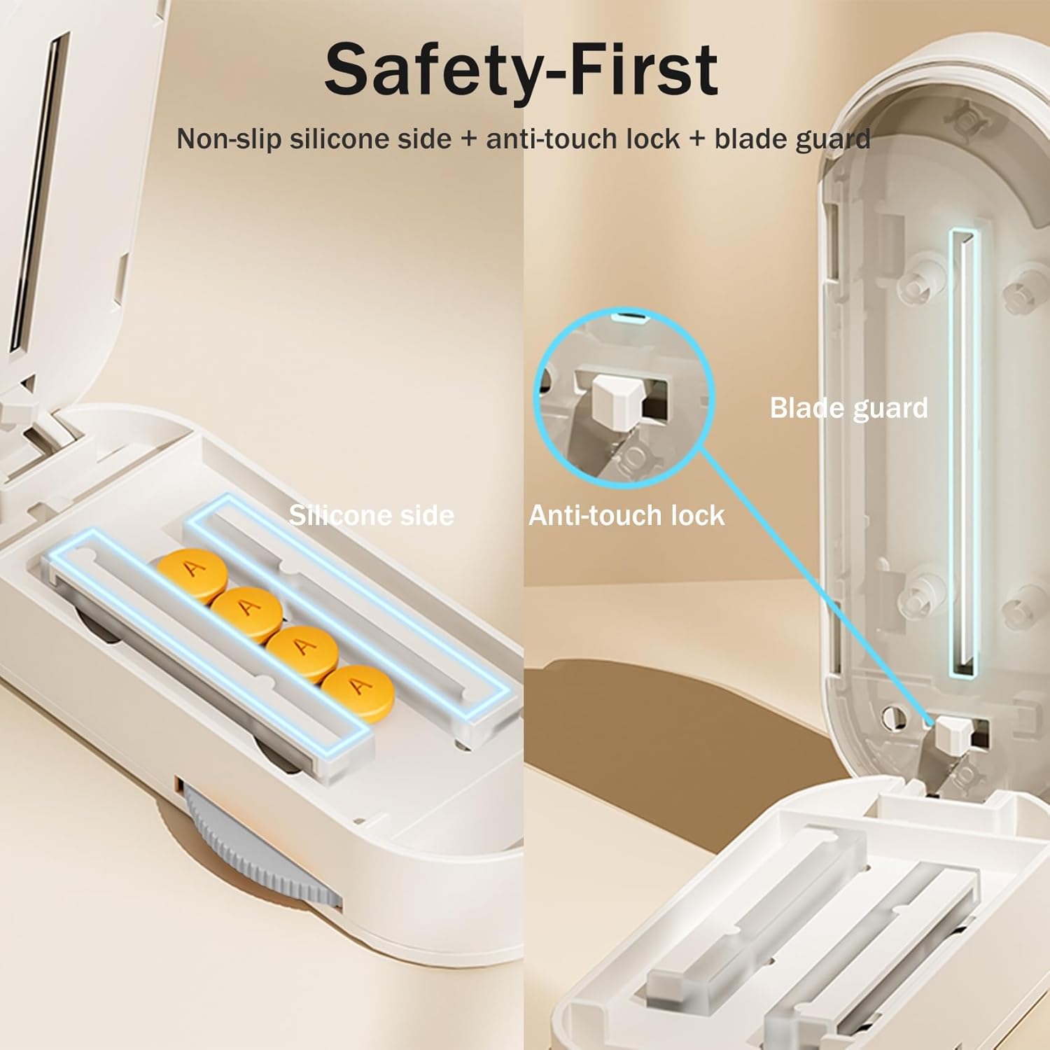- Adjustable Alignment for 3/32" - 45/64" Pills: Slide-to-fit tray locks round/oval/standard pills (2.5mm - 18mm) in place for centered, precise cuts multiple pills every time
