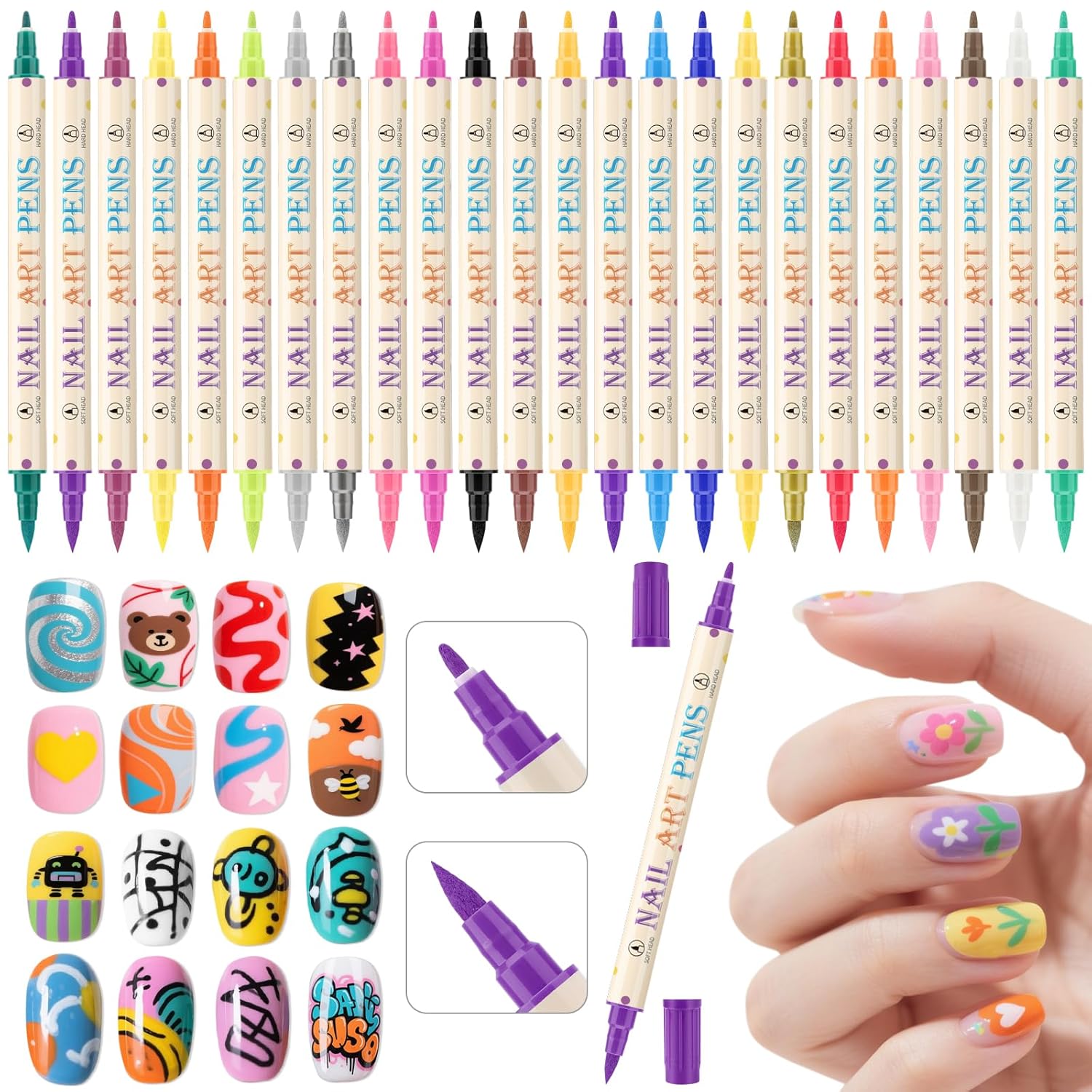 - 【24 Vibrant Colors for Versatile Creations】This Ponhey nail art pens set includes 24 highly saturated colors, meeting diverse daily nail art needs. From simple solid color matches and color-block designs to holiday-themed patterns, it helps you achieve salon-level manicures at home, keeping your nails away from monotony