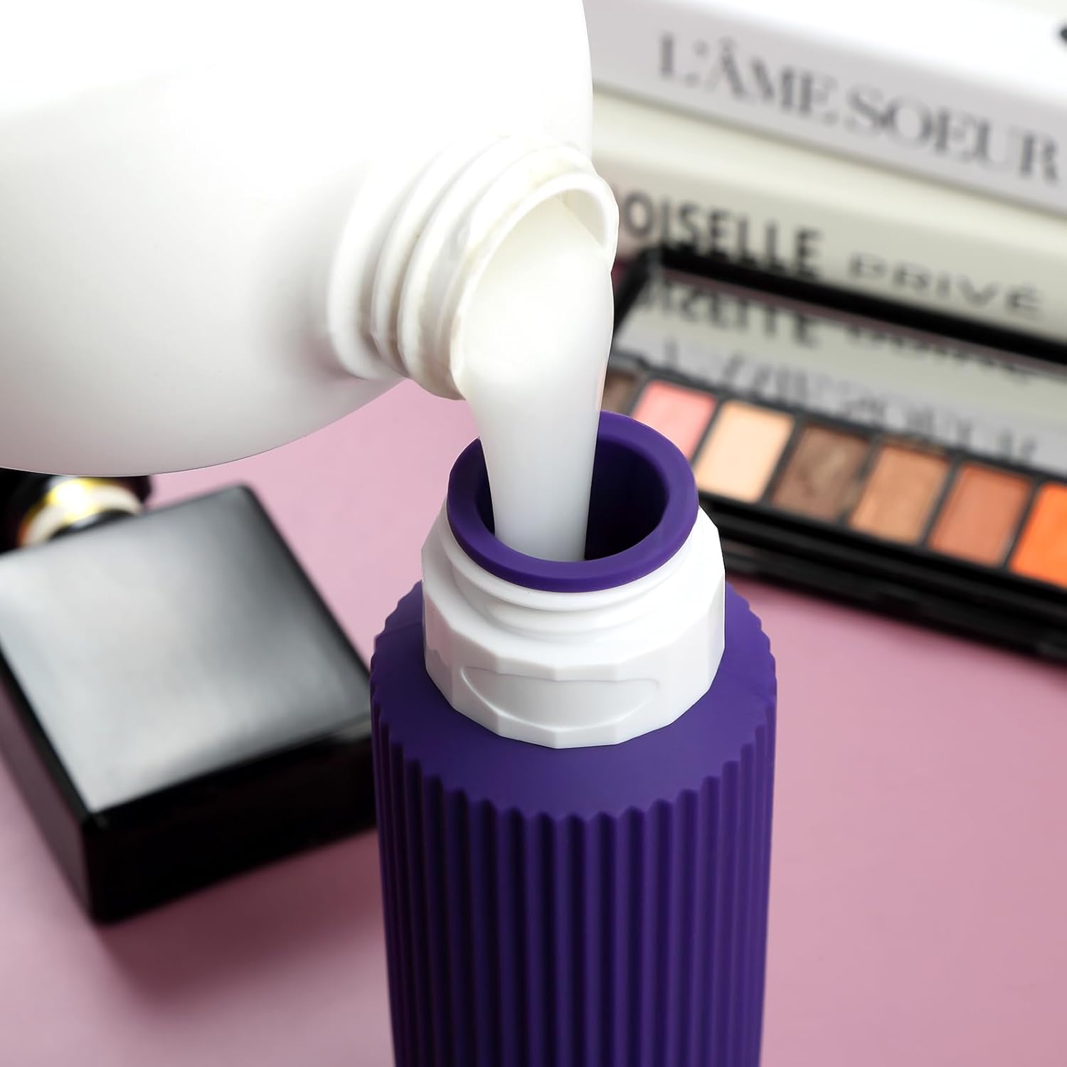 - Oversize 6oz travel bottle: Featuring a PVC toiletry bag, these travel-sized silicone bottles are perfect for storing and dispensing your favorite shampoos, lotions, and other liquids. Designed for convenience and durability, this travel set is a must-have for all your adventures.