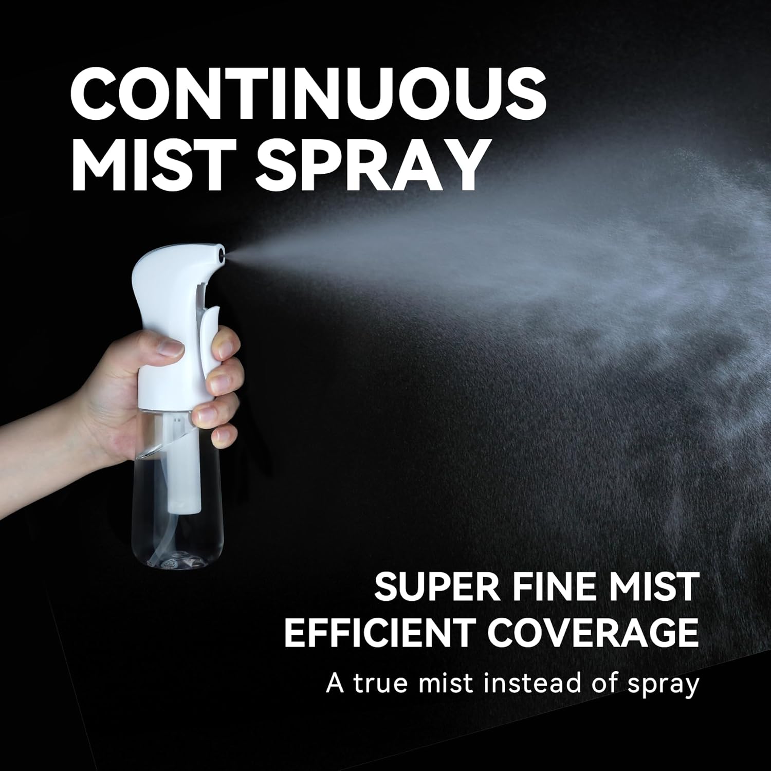 - Continuous Spray: The continuous spray bottle is engineered with robust pre-compression technology, which produces a mist stream that lasts for several seconds with just a few gentle presses.